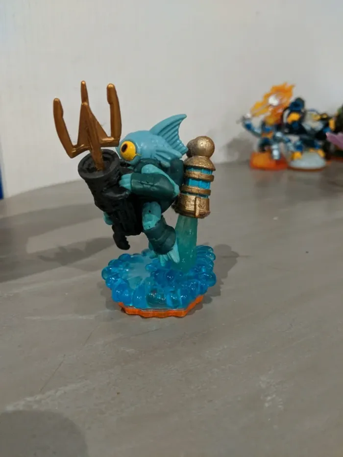 Figurine Skylanders Giants : Gill Grunt, en très bon état. Testée et fonctionnelle, compatible avec tous les portails et versions du jeu prenant en charge les figurines Spyro’s Adventure, Giants et suivantes. Skylander de l’élément Eau, équipé de son harpon et de son jetpack, un classique incontournable pour toute collection. Remise en main propre possible ou envoi soigné selon vos préférences. 💶 Prix : 5€