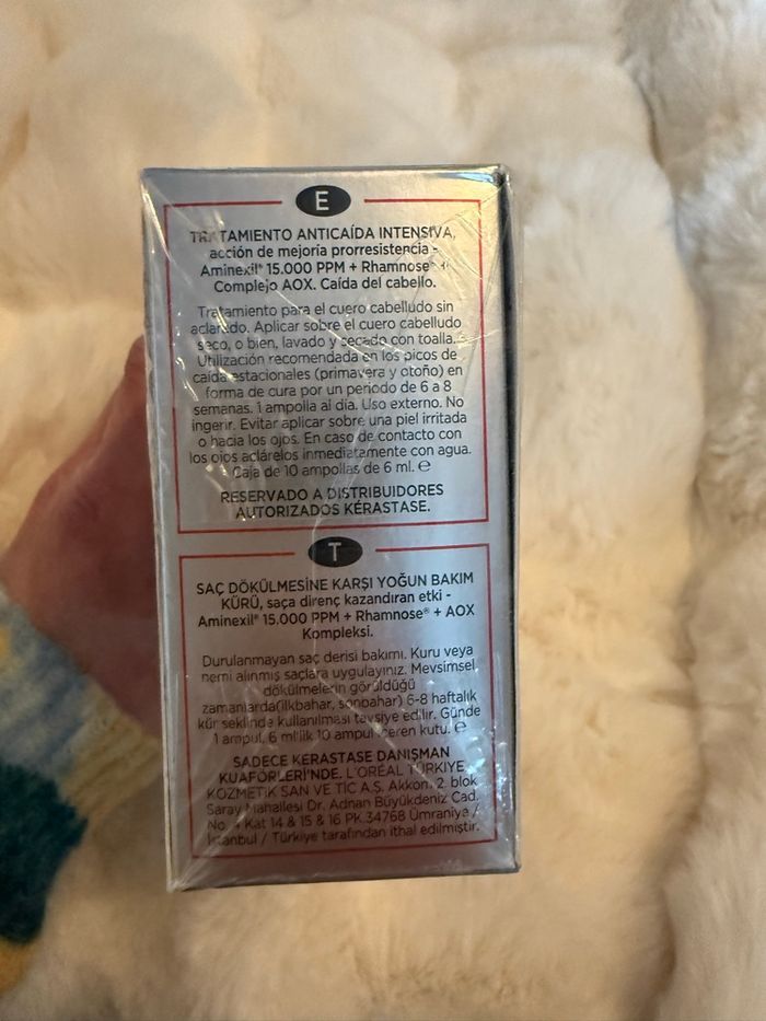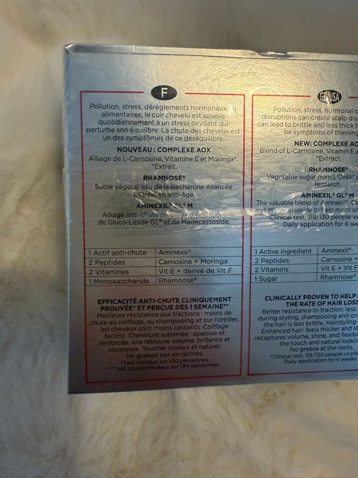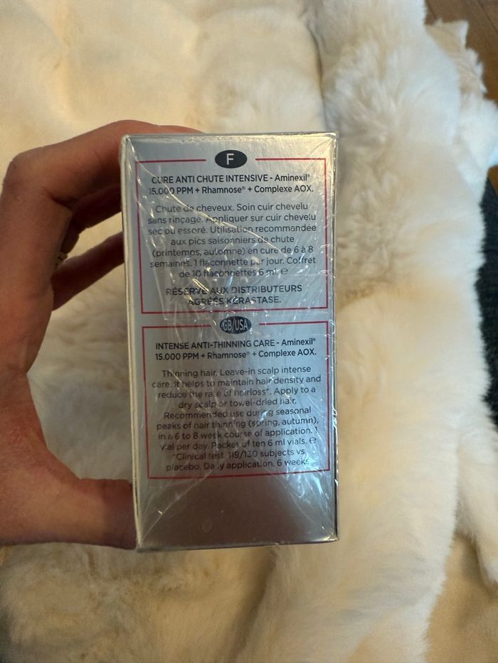Boîte neuve de 10 ampoules kerastase anti chute de cheveux Sous blister Appliquer une demi ampoule à la racine tous les soirs Achetées chez mon coiffeur
