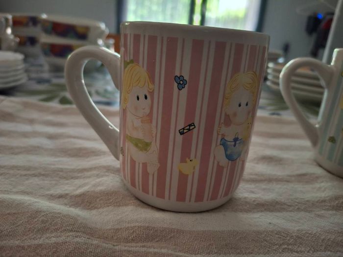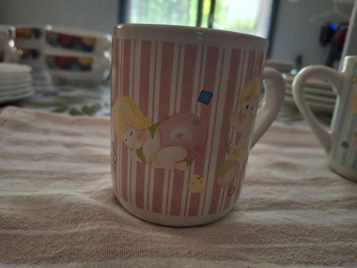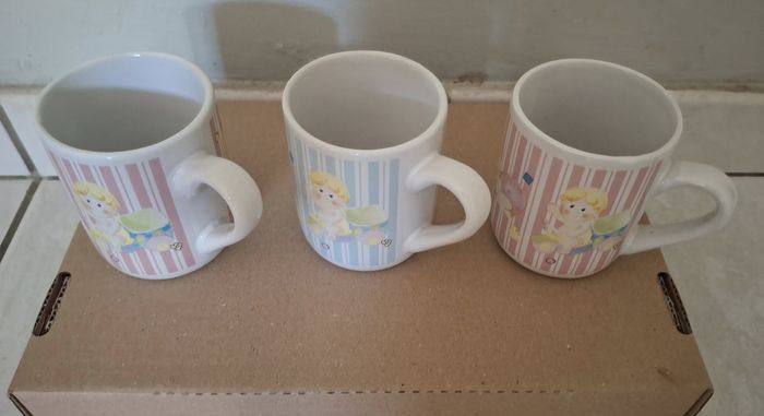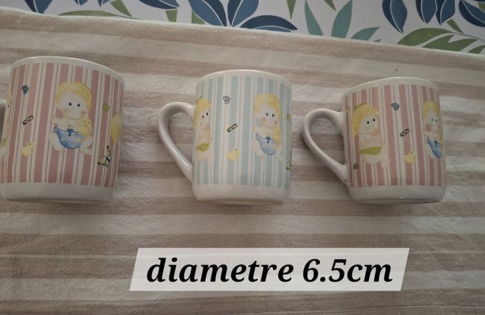 3 mugs avec cherubins.2 roses et un bleu
