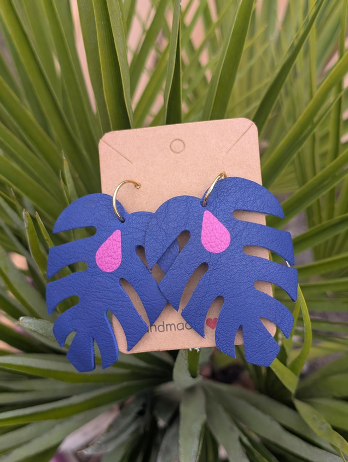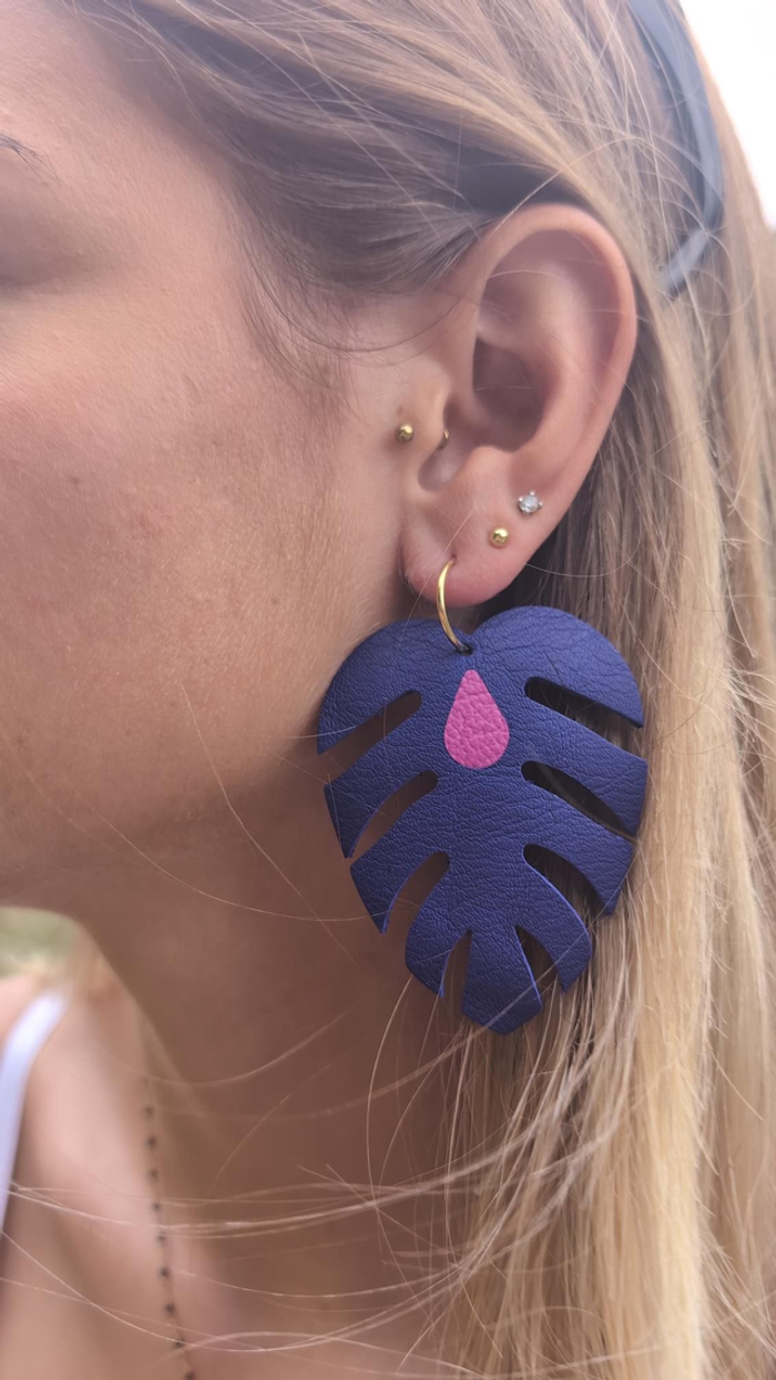 BO Big "Monstera" En cuir recyclé 💚 Montées sur créoles en acier inoxydable. Légères, originales, faites main avec soin. Parfaites pour un look unique et naturel !