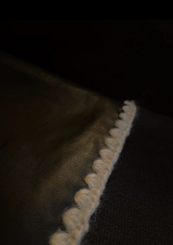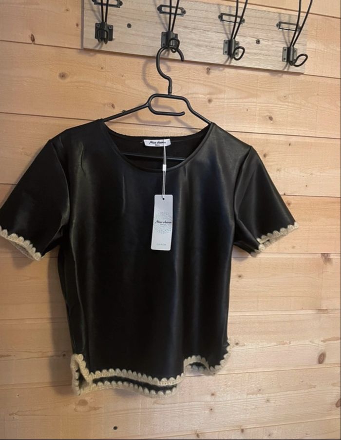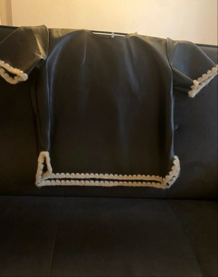 Haut noir en simili cuire avec les rebords en espèce de laine, léger et doux à l’intérieur, jamais porté
