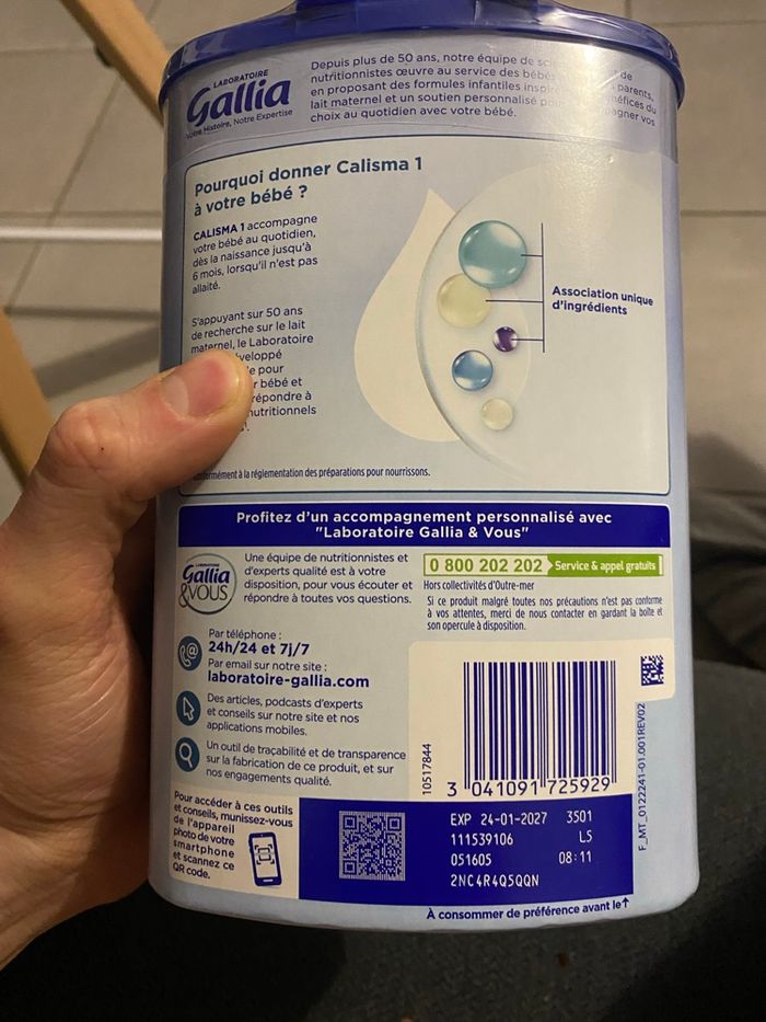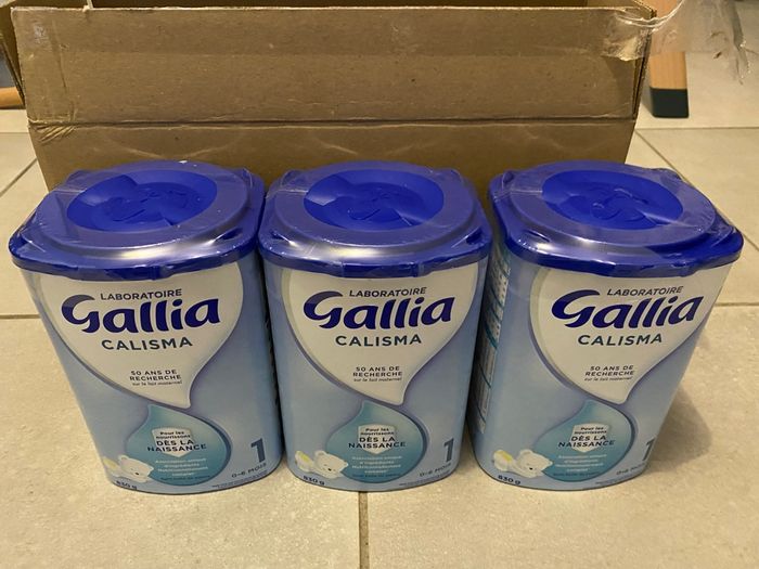 Vend lot de 3 boites neuves de Gallia Calisma 1 (3x830g) Ma fille ne supporte plus ce lait, j’ai du changer de marque et de gamme Date de péremption : 24/01/2027