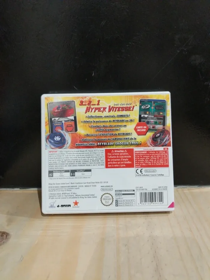 Jeu Nintendo 3DS en parfait état, version complète avec notice. Cartouche testée et 100% fonctionnelle. ✔️ Jeu authentique ✔️ Envoi rapide et protégé ✔️ Vendeur Pro (Mangames) Un jeu dynamique basé sur l’univers Beyblade, avec combats, personnalisation et utilisation du gyroscope pour plus d’immersion. 💶 Prix : 5 €