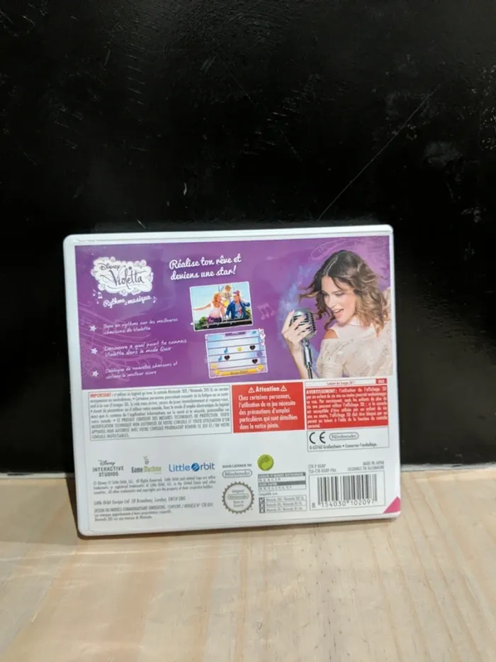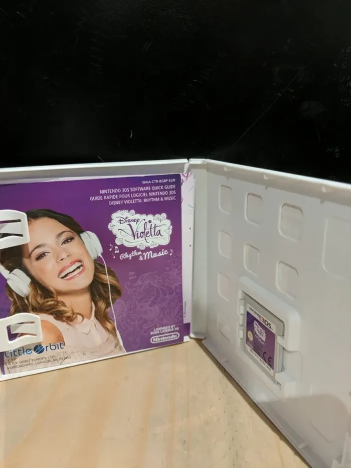 Jeu Nintendo 3DS en parfait état, idéal pour les fans de Violetta. Version complète avec notice, cartouche testée et 100% fonctionnelle. ✔️ Jeu authentique ✔️ Envoi rapide et protégé ✔️ Vendeur Pro (Mangames) Jeu musical fun et accessible, parfait pour chanter, danser et suivre l’univers de Violetta. 💶 Prix : 5 €