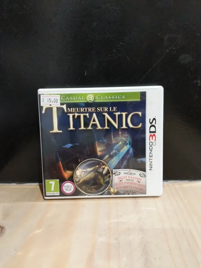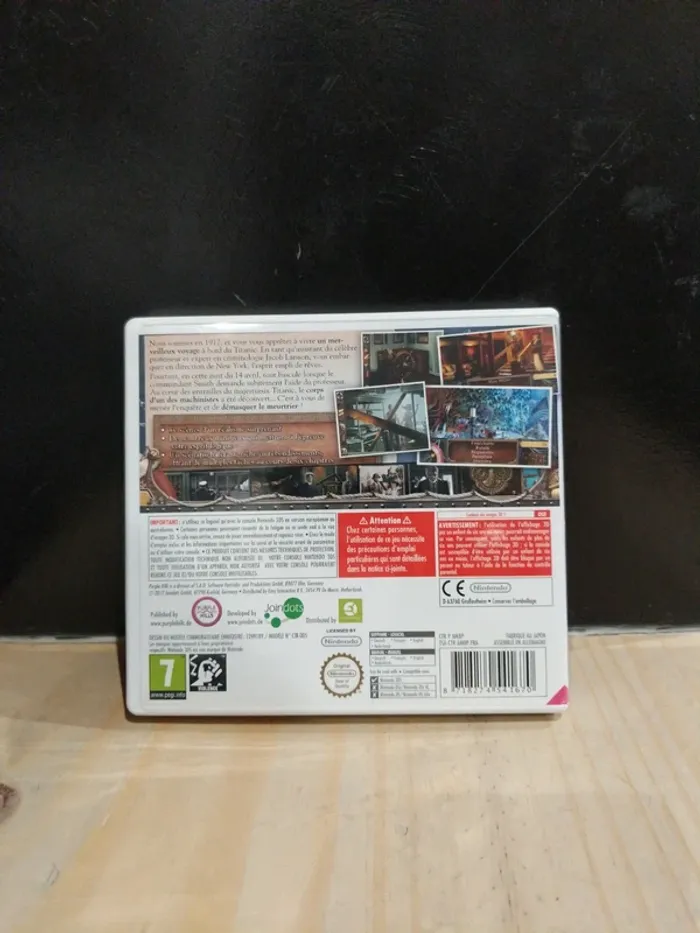 Jeu Nintendo 3DS en parfait état, version sans notice. Cartouche testée et 100% fonctionnelle. ✔️ Jeu authentique ✔️ Envoi rapide et protégé ✔️ Vendeur Pro (Mangames) Un jeu d’enquête et de réflexion à bord du Titanic, idéal pour les amateurs de mystères et d’énigmes. 💶 Prix : 15 €