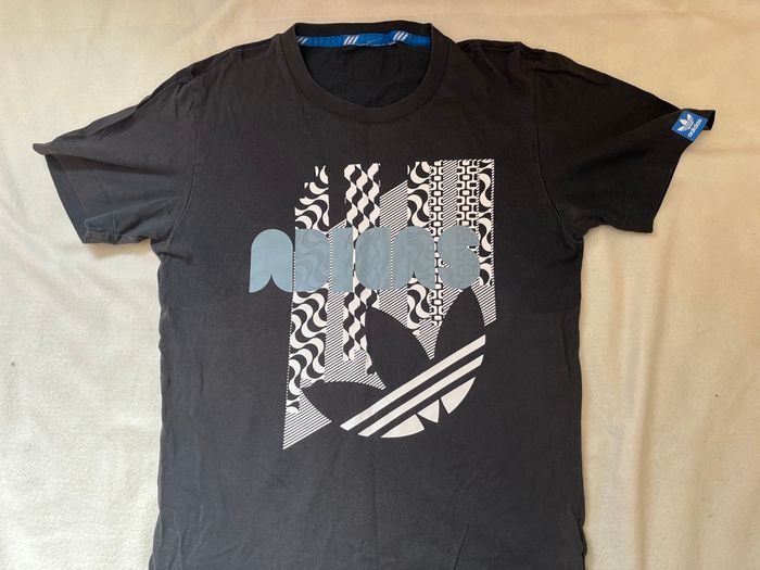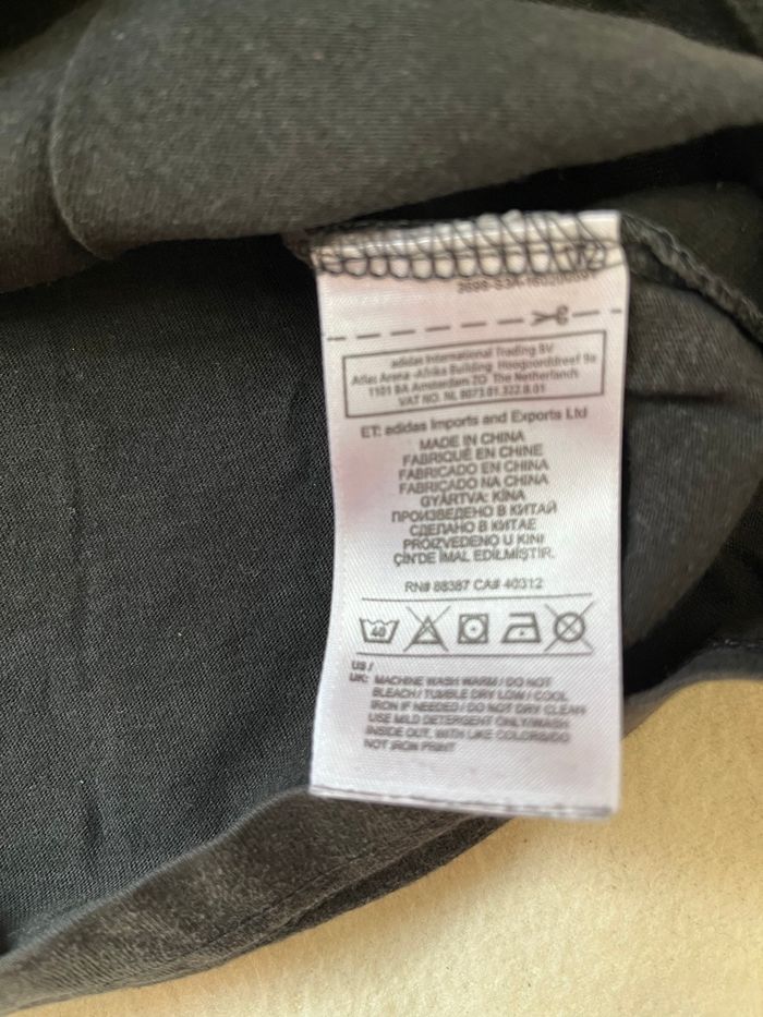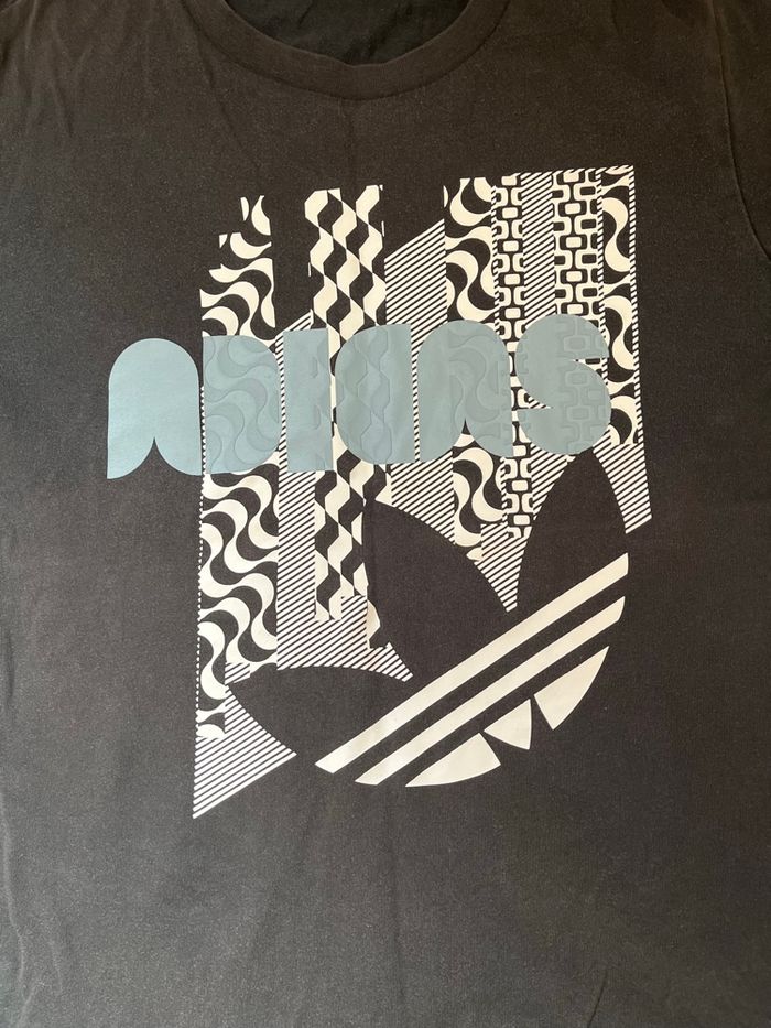 Vends ce T-shirt manches courtes de couleur noire motif blanc sur l’avant avec le logo Adidas et motif bleu clair marque Adidas demi largeur aux aisselles 43 cm longueur 65 cm 100% coton pas d’étiquette de taille mais correspond à du S 8 euros Mes autres annonces de vêtement pour homme ou femme de XS à S ou 12 à 14 ans #lma42femmeS #lma42femmeXS #lma42femmeXXS #lma42hommeS #lma42hommeXS #lma42garcon14 #lma42garcon13 #lma42garcon12 #lma42fille14 #lma42fille13 #lma42fille12