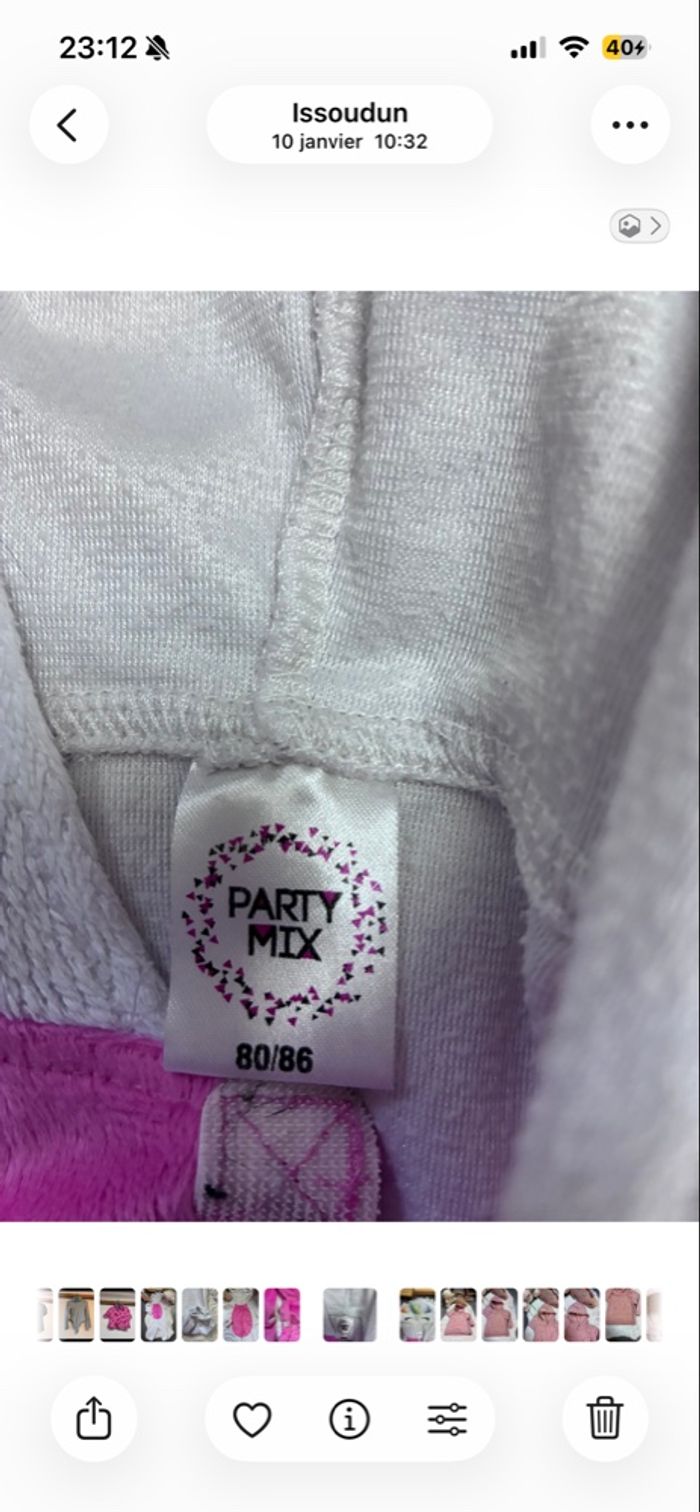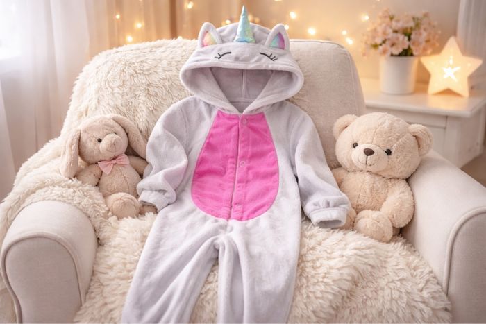 Adorable combinaison licorne de la marque Party Mix, taille 80/86 cm. Parfaite pour tenir bébé bien au chaud avec un look trop mignon ✨