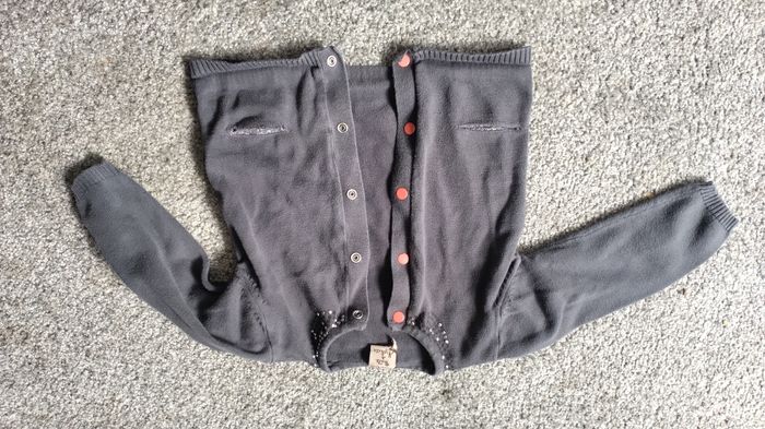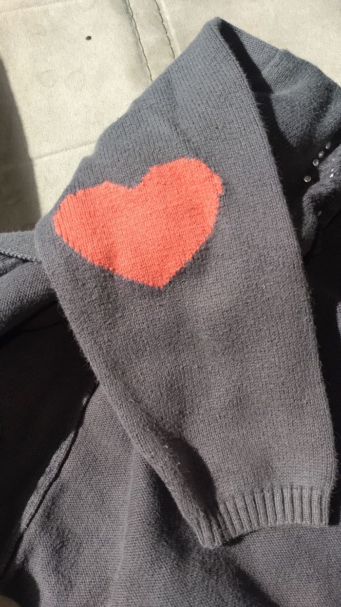 Gilet gris, poches argentées et coudières en forme de coeur rouge
