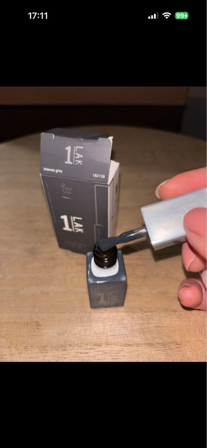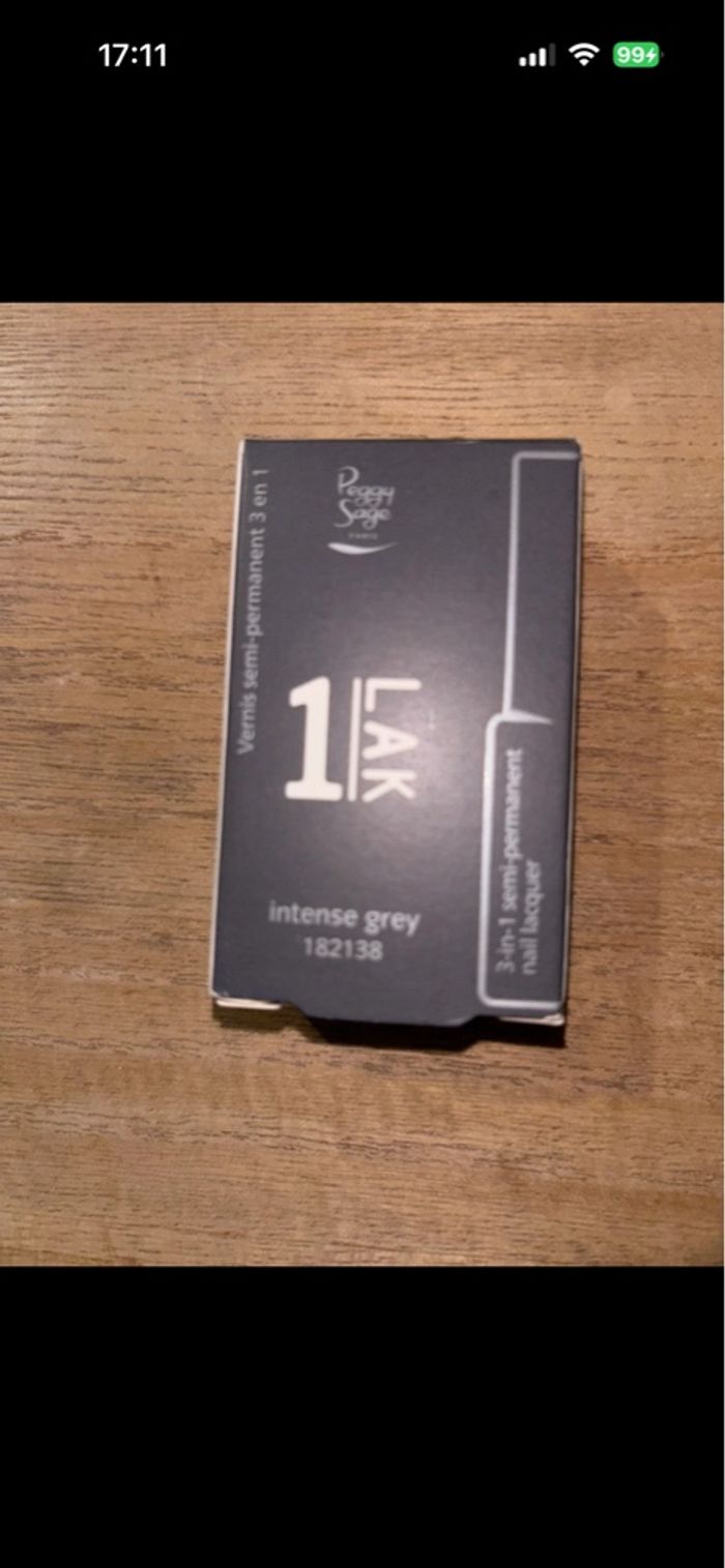 Vernis semi permanent 3 en 1 1LAK de chez Peggy sage Référence: Intense Grey 182138 Couleur gris Texture laquée 5ML Neuf, jamais utilisé. Ouvert uniquement pour la photo !
