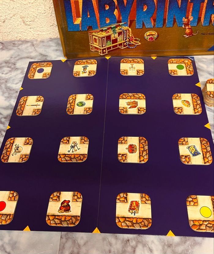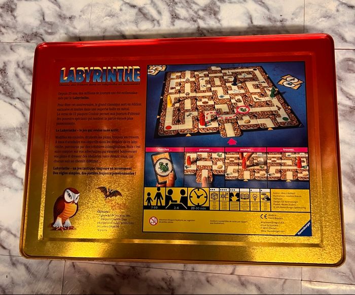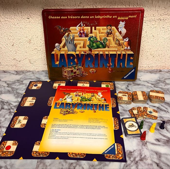 Labyrinthe Ravensburger Une chasse aux trésors dans un labyrinthe en mouvement Chaque joueur déplace les murs du labyrinthe pour se frayer un chemin qui mène aux trésors. les couloirs du labyrinthe bougent tout le temps. Le joueur qui aura trouvé tous ses trésors et ramené son pion à son point de départ sera déclaré Un jeu de réflexion et de suspense pour toute la famille, de 2 à 4 joueurs à partir de 7 ans.