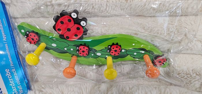 Magnifique porte manteau coloré en bois . Motifs coccinelle 🐞. Longueur environ 28 cm. Neuf.