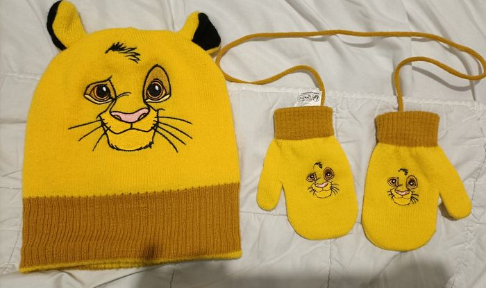 Vends ensemble Bonnet + Moufles "Simba". Très bon état Taille : bonnet + moufles 49 cm