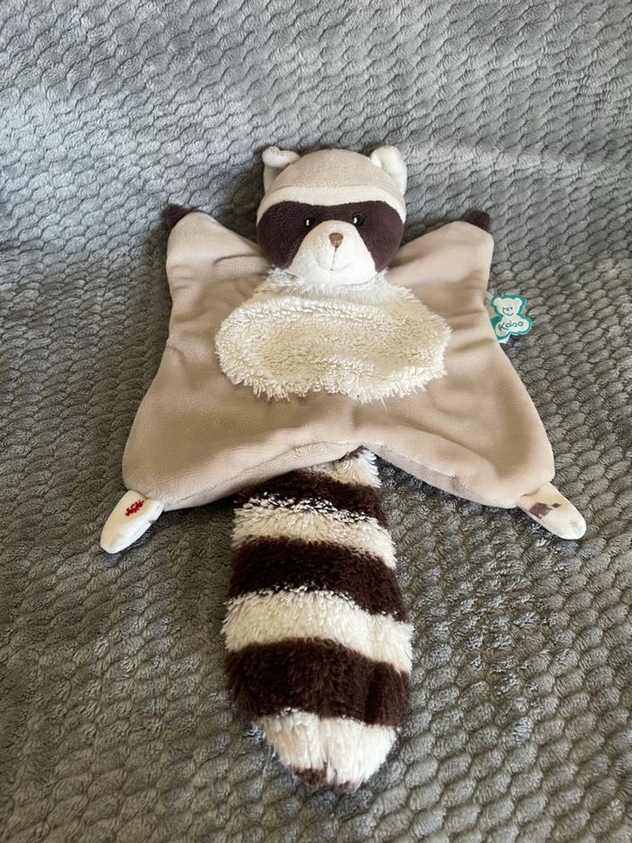 Doudou plat Léon raton laveur beige et blanc Collection: Filoo +/- 20cm Kaloo Occasion en excellent état Vous achetez le doudou que vous voyez sur la photo.