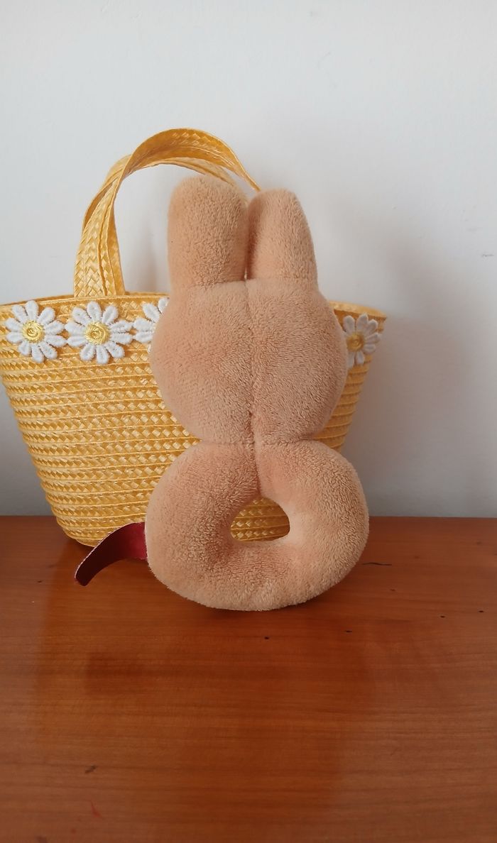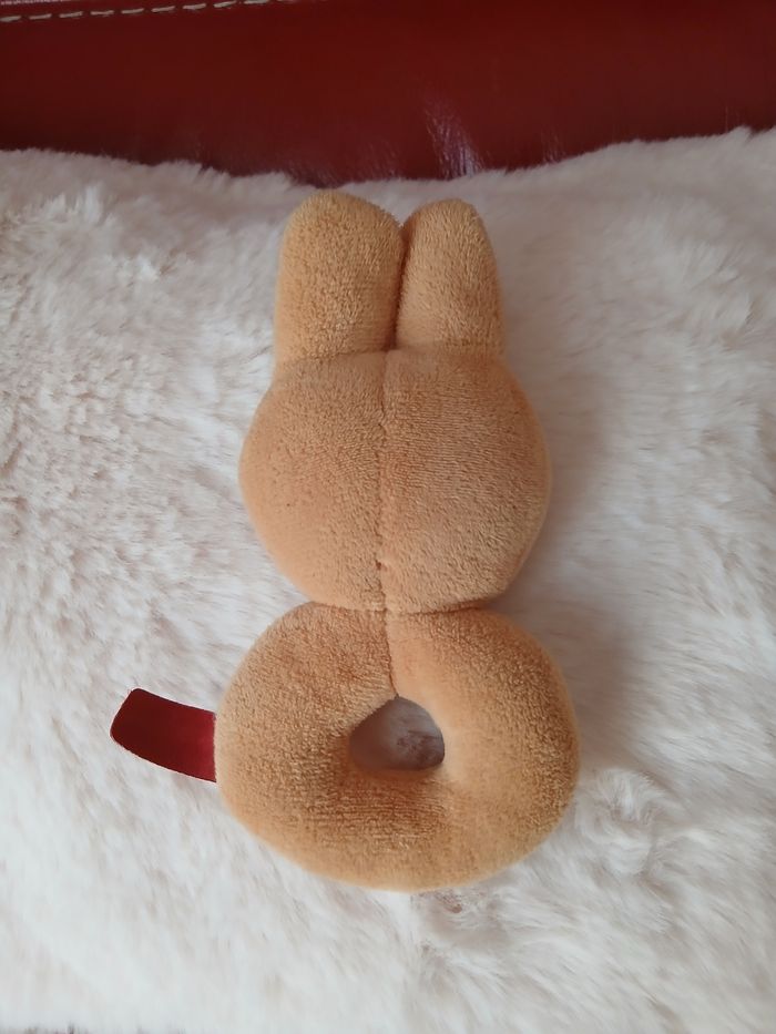 Doudou licence Miffy; en tissu velouté. Yeux et museau brodés. Léger bruit de grelot quand on le secoue. Hauteur totale de 15 cm // voir photos pour détails