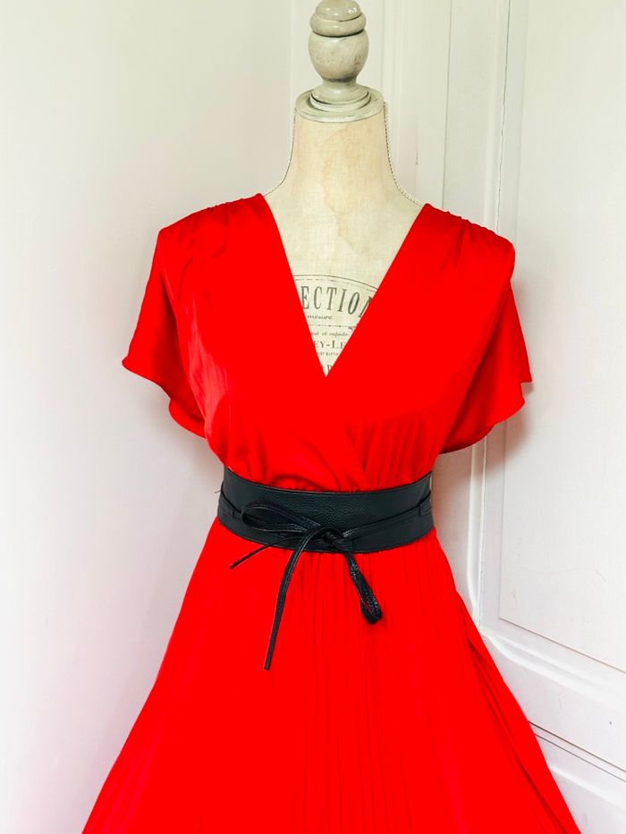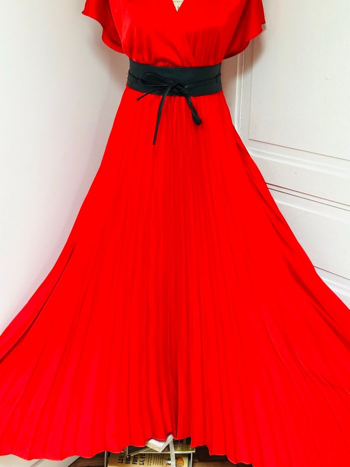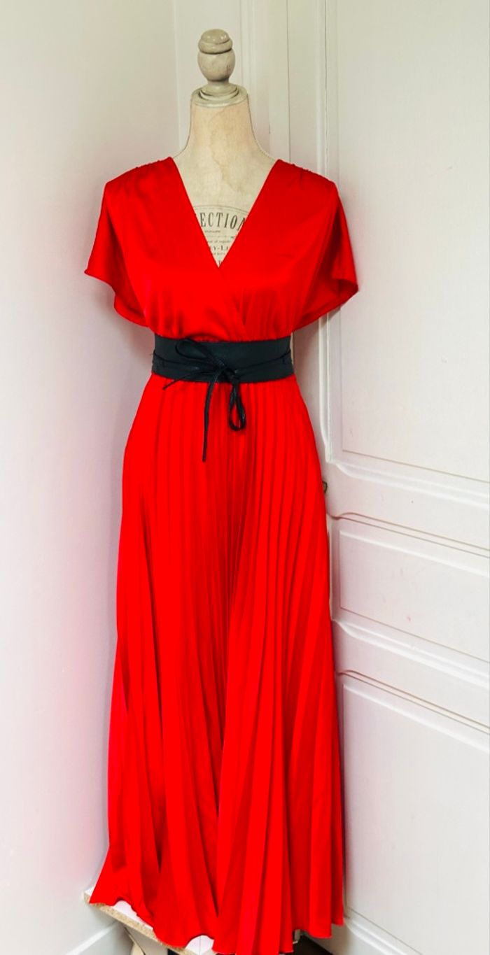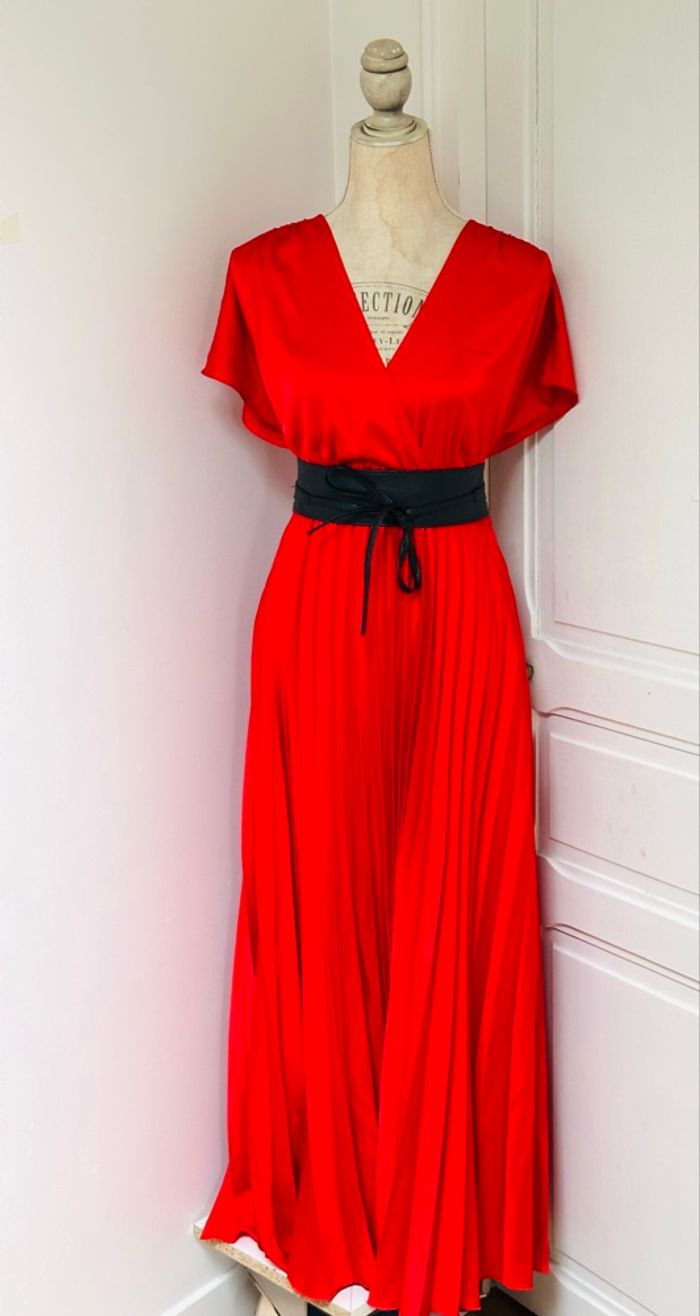 Très belle robe longue de marque promod De couleur rouge Effet satiné De taille 40 En excellent état Très belle découpe avec son beau décolleté cache cœur Élastique à la taille Un magnifique tombe plissé en évasé