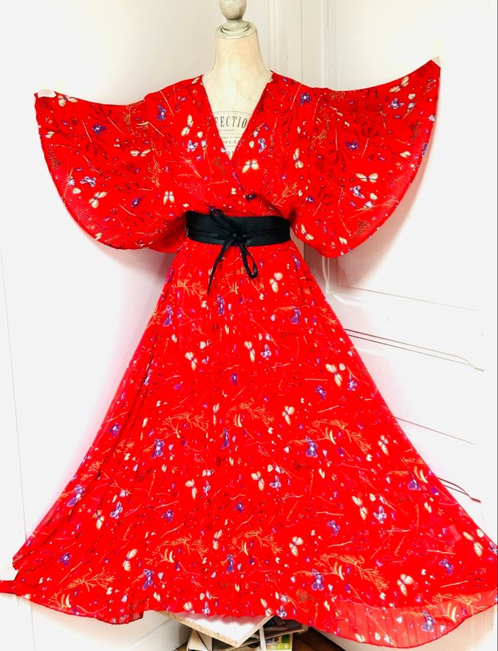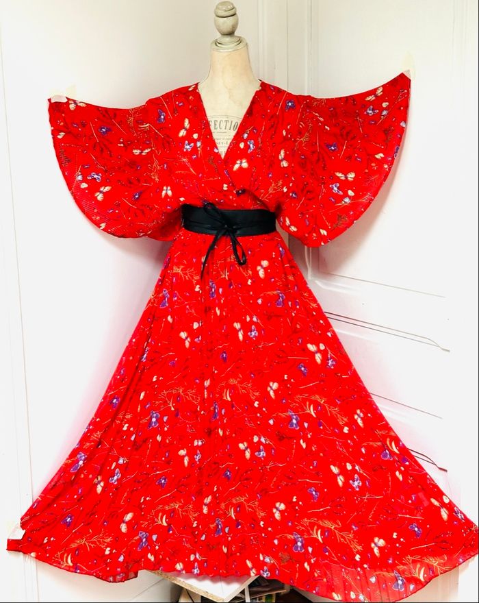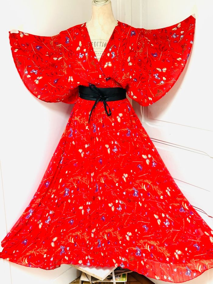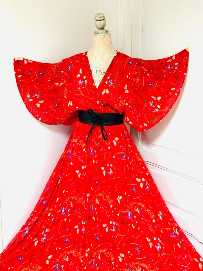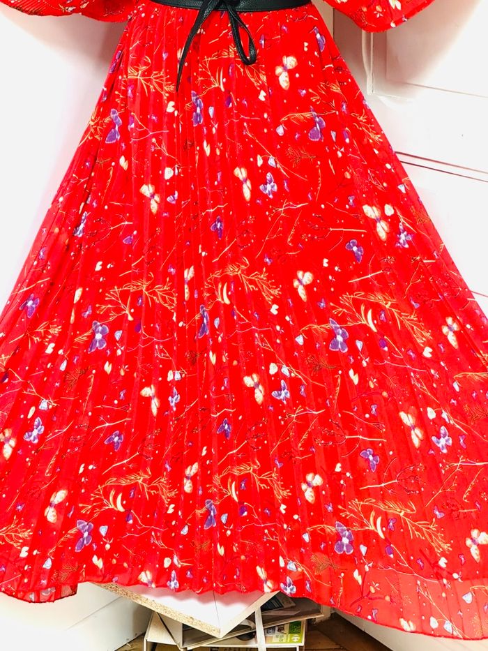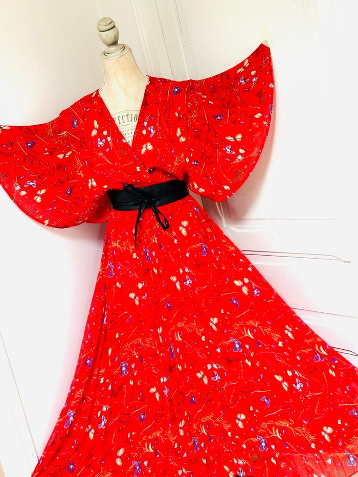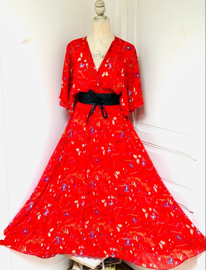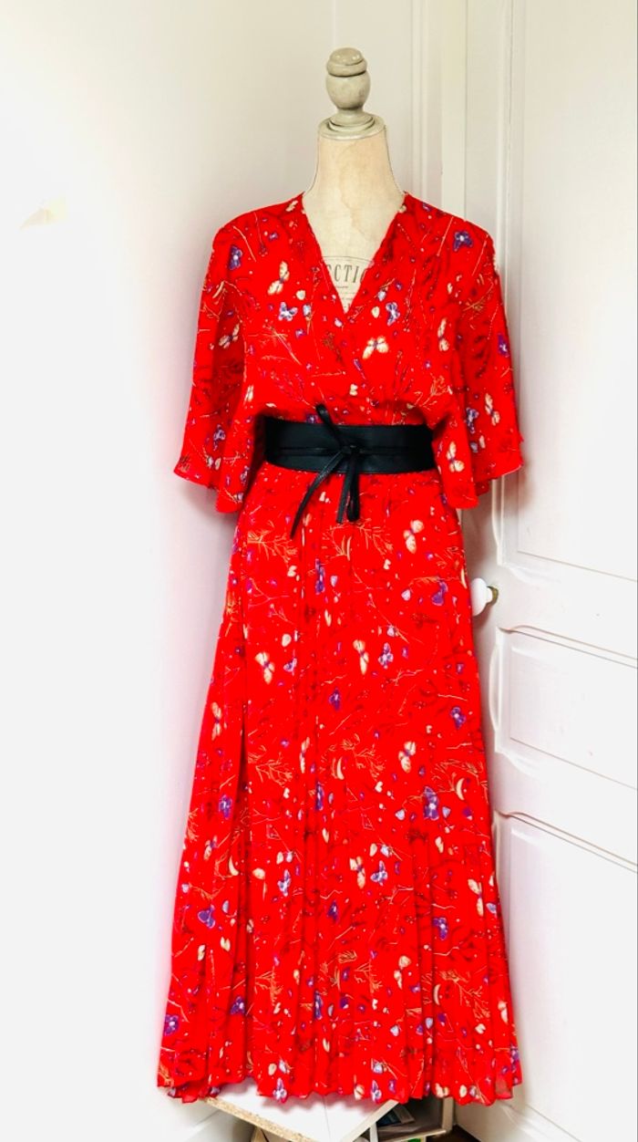 Magnifique robe longue De marque Gold and Silver De taille 2 mais qui convient jusqu’à 44 De couleur rouge imprimée de motifs multicolores En excellent état quasi neuve Très belle découpe avec son beau décolleté cache cœur Élastique à la taille Un magnifique tombe plissé en évasé