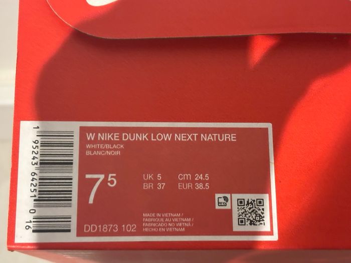 Paire de basket 👟 pour femme en 📏 taille 38 ,5 eu 📏 Taille US 7.5 Couleurs blanches et noirs ✅ NEUVE #nikedunklow #basketfille38.5 #nikedunklownature #nikedunk38 .5 #nikedunklownatureus7.5