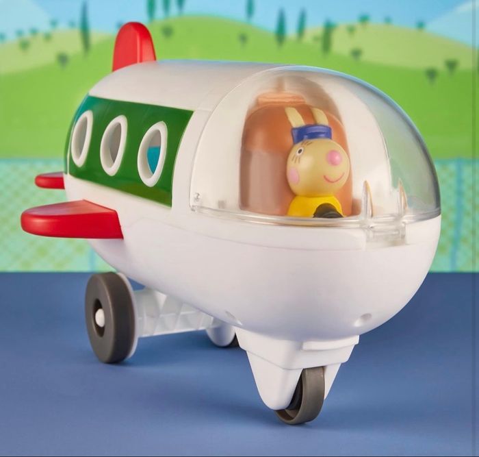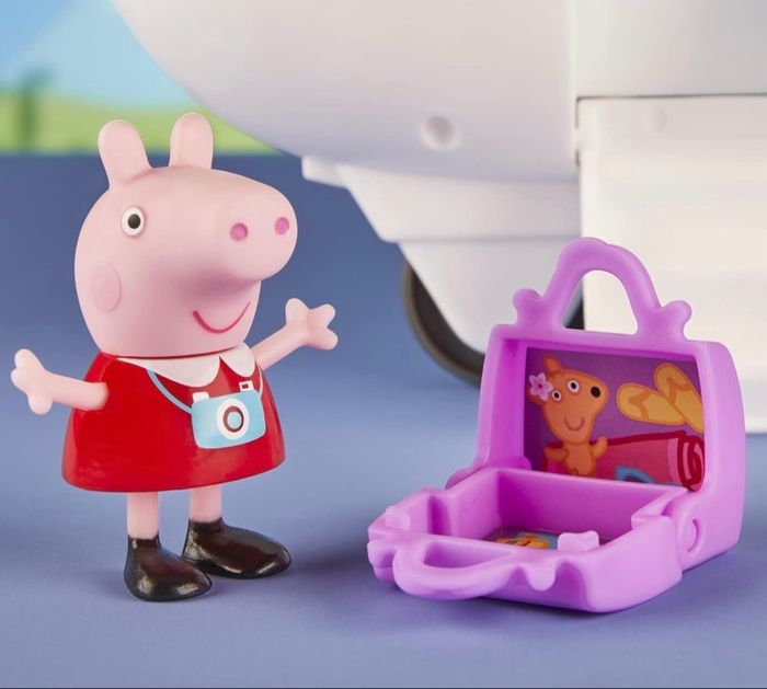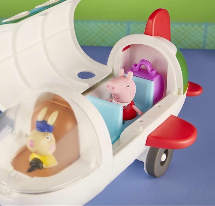 Ce jouet est inspiré de l'un des nombreux véhicules pilotés par Mlle Rabbit dans le célèbre dessin animé INCLUT FIGURINE DE PEPPA et de la place pour 2 autres figurines. La figurine de Mlle Rabbit attachée au siège bascule derrière la cabine de pilotage, au cas où quelqu'un d'autre voudrait piloter l'avion L'AVION ROULE VRAIMENT pour que les enfants puissent le pousser partout sur le plancher. Le toit, l'escalier et la soute arrière de l'avion s'ouvrent pour s'amuser encore plus. La valise de Peppa se range derrière le dernier siège