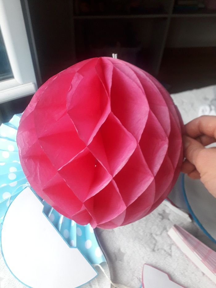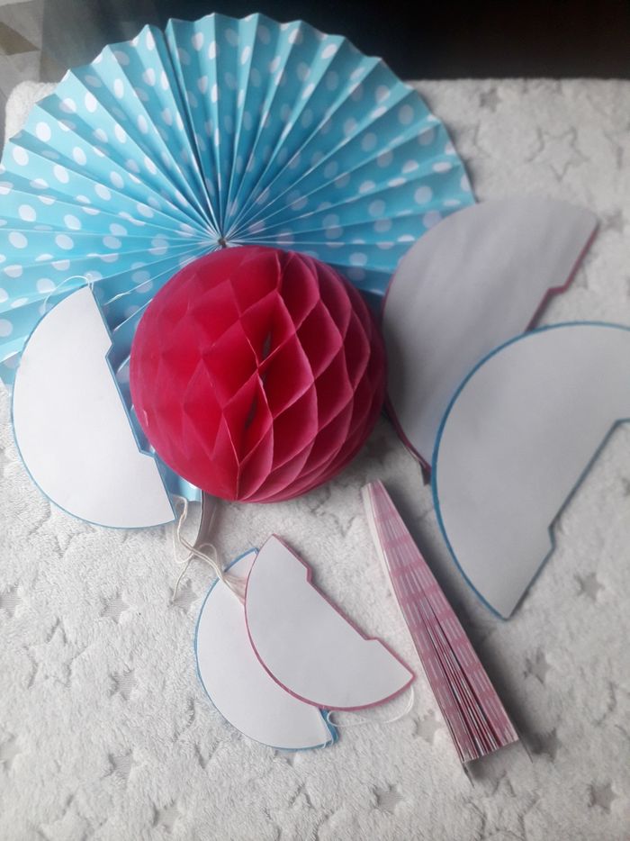 Décoration papier rose et bleu, plusieurs tailles et formes (boules et disques). Idéal gender reveal / grossesse / baby shower