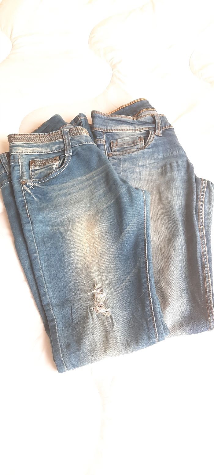Lot de jeans bleu délavé. Un peu usé entre les jambes et quelques fils tirés. ( photos ) L'un d'entre eux est marqué L mais même taille que le M. Réductions activées.