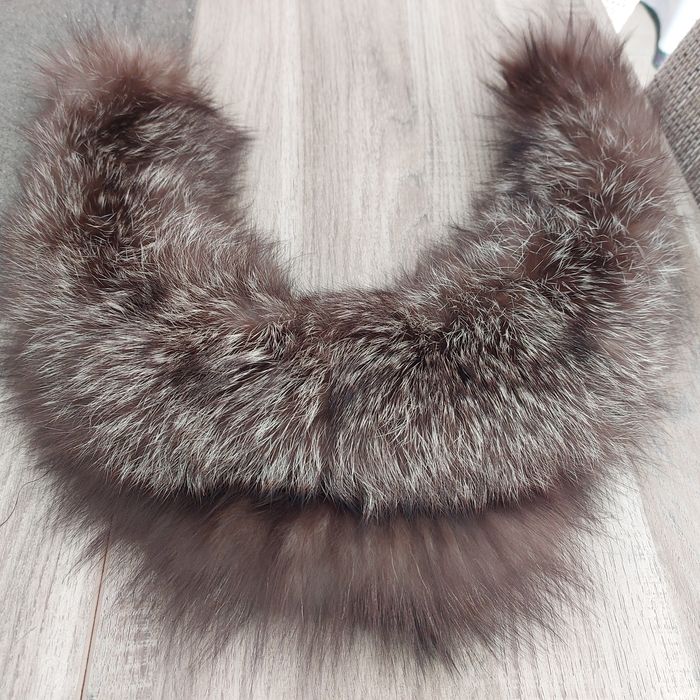 Col vintage fourrure véritable renard argenté-couleur brun/ chocolat avec mèches gris-argent-fourrure douce , agréable au toucher, style vintage intemporel ,idéal pour manteau , veste, création couture longueur 76 cm- bon état général poils assez longs souples