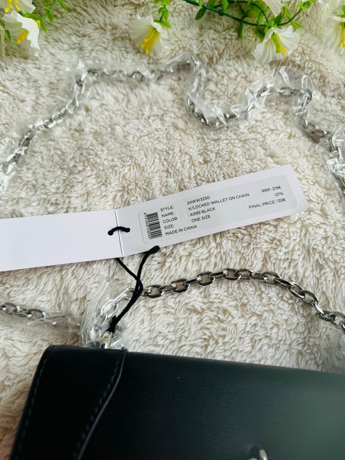 Sac Karl Lagerfeld neuf, jamais utilisé, avec étiquette d'origine. Prix de vente conseillé (RRP) : 219 € Prix final indiqué sur l'étiquette : 139 € Prix de vente: 119€ Détails du produit : • Modèle : K/LOCKED Wallet on Chain • Couleur : Noir Matière : cuir synthétique (similicuir / éco- cuir) • Fermeture magnétique • Chaîne métallique • Taille : Taille unique Sac élégant et pratique, parfait pour une utilisation quotidienne ou pour des sorties. 📦 Envoi rapide et soigné ❌Pas d'échange