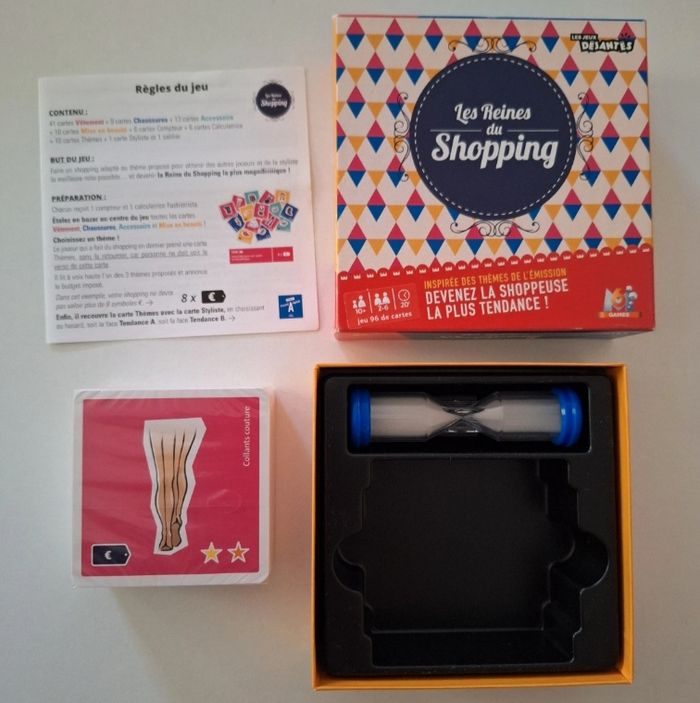 Petite boîte de jeu de société de 13 cm x 13 cm. Complet avec les cartes encore sous blister, le sablier et la notice de jeu.