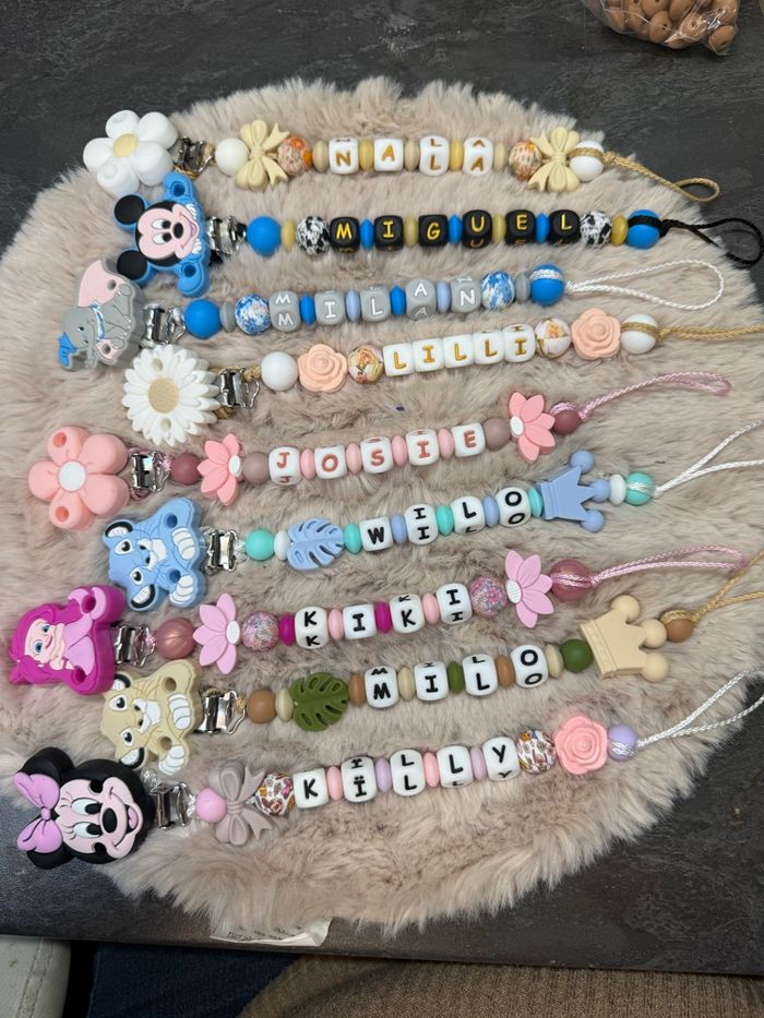 Pour passer commande il suffit de valider le paiement sur l’annonce du modèle désiré et de m’envoyez le prénom de l’enfant par message que je puisse réaliser votre commande A partir de 2 articles vous bénéficiez de 5% de réduction 🥰 Réalisation dans la journée et envoie dès le lendemain Attention l’adaptateur tétine mam et en supplément à 1€ Une petite photo du modèle terminé et toujours envoyez que vous puissiez vérifier ☺️