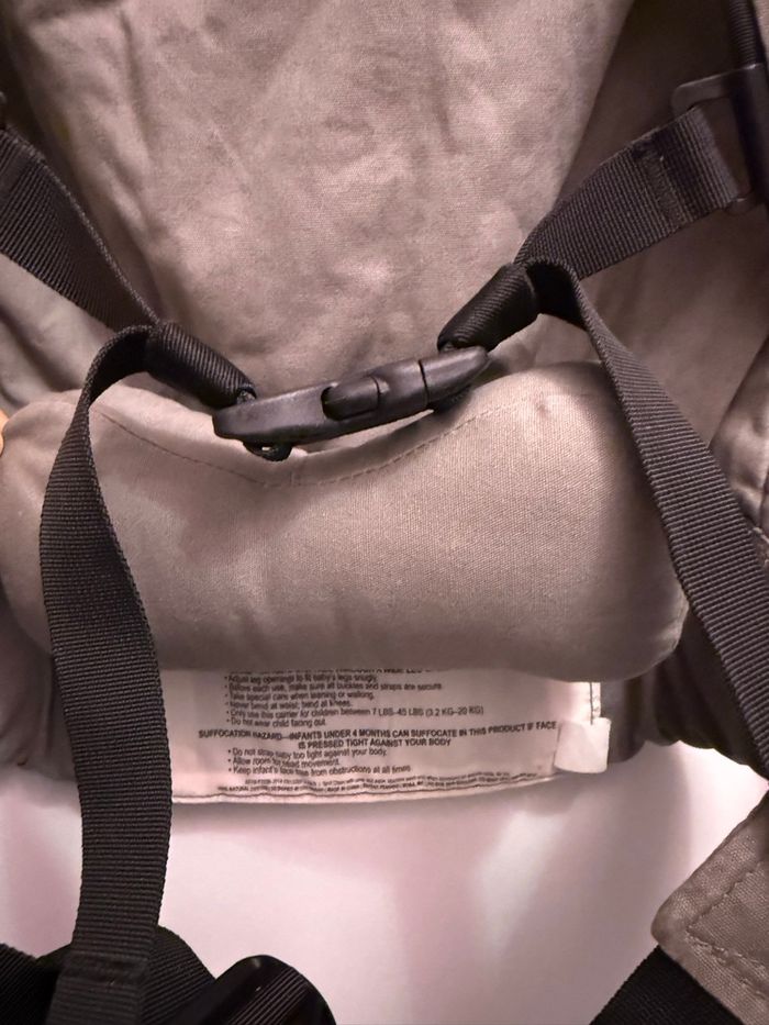 Très bon état Possibilité d’ajouter ou non la capuche Repose pied et petit coussin selon la taille de l’enfant Bon maintien pour le dos des parents Réglable facilement Poids entre 3,2 kg et 20kg