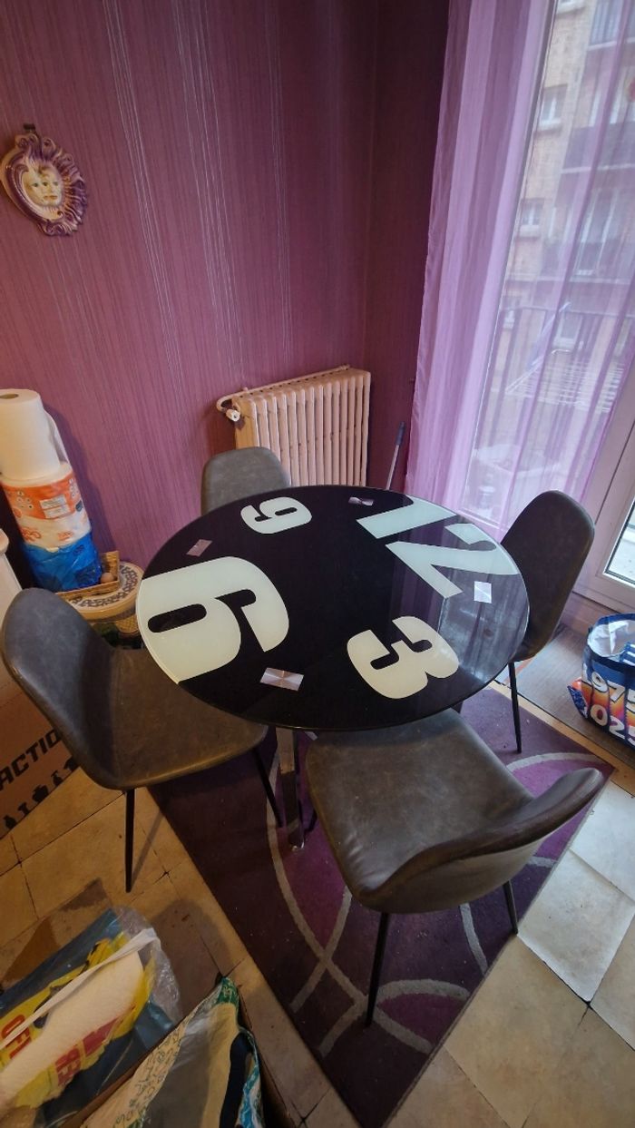 Vend table a manger en verre avec quatre chaises rises en tres bon etat A recuperer en main property sur boulogne billancourt