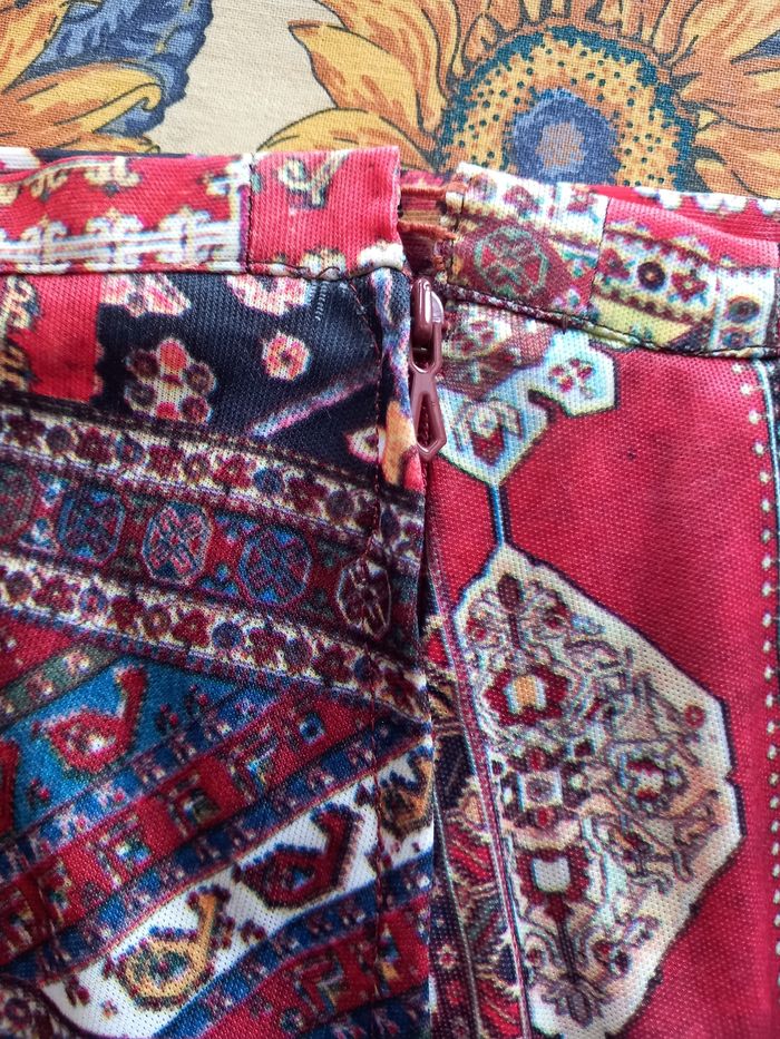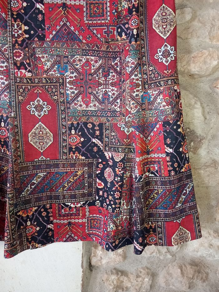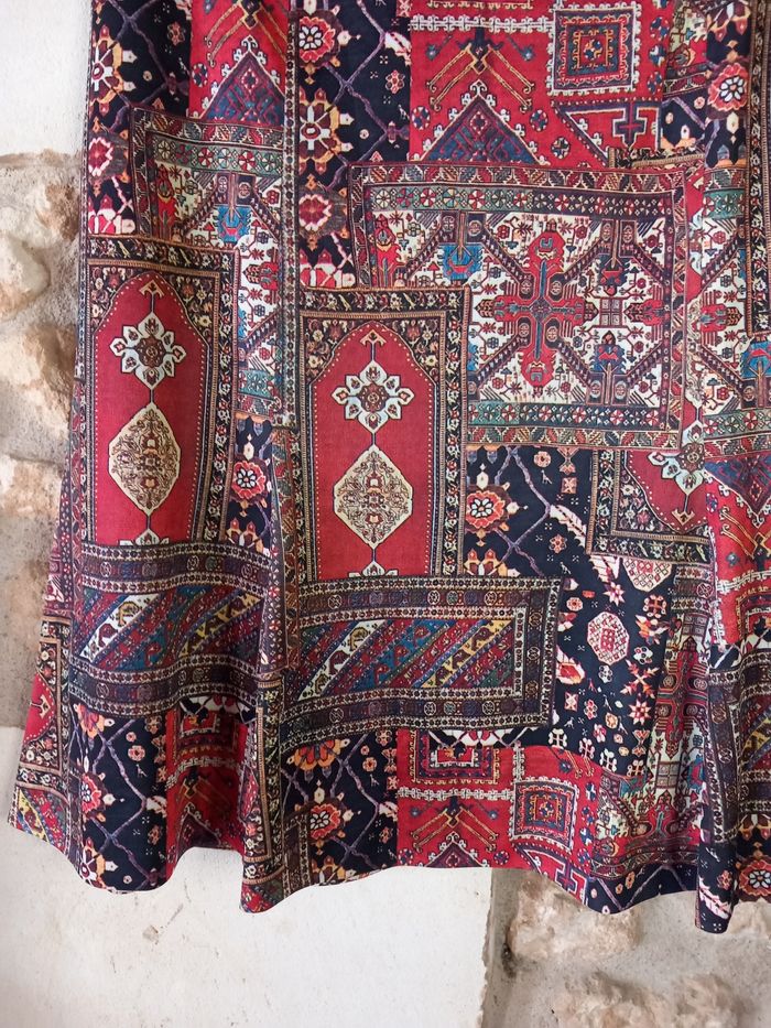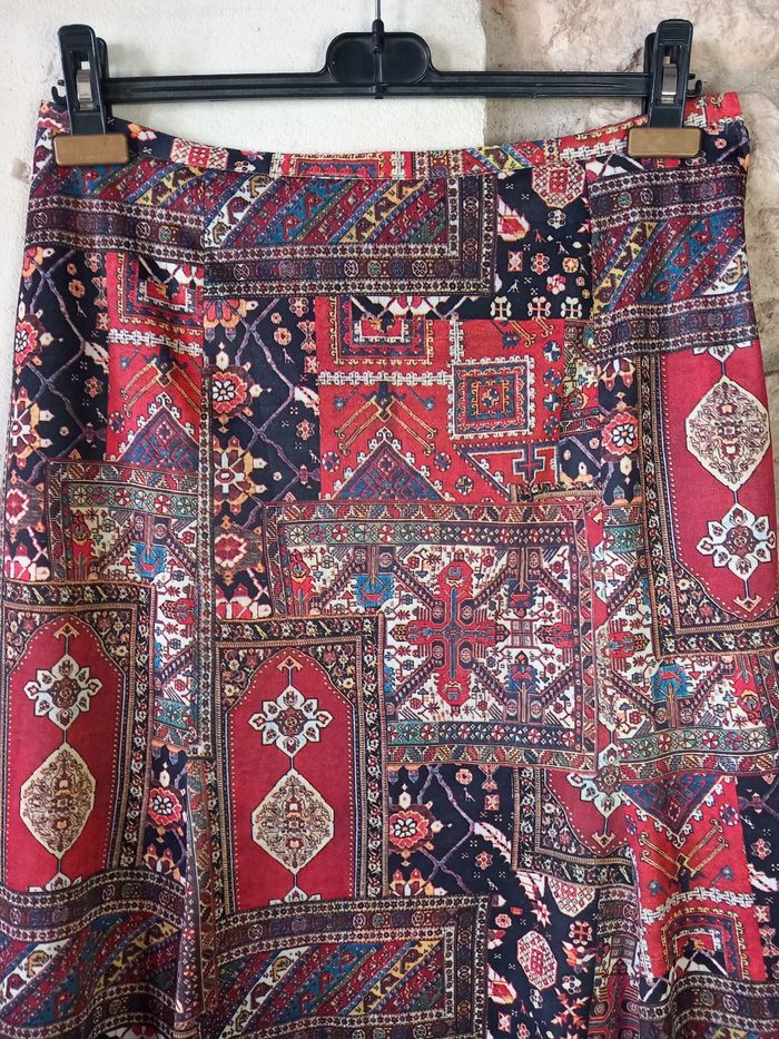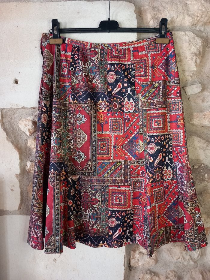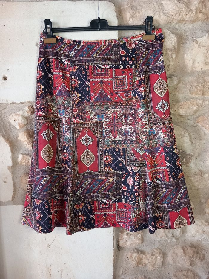 Jupe mi-longue multicolore. Elle est doublée. Longueur 63 cm. Taille 38.