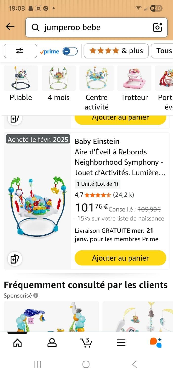 Jumperoo utilisé quelque fois manque les petit jouet qui pendouille