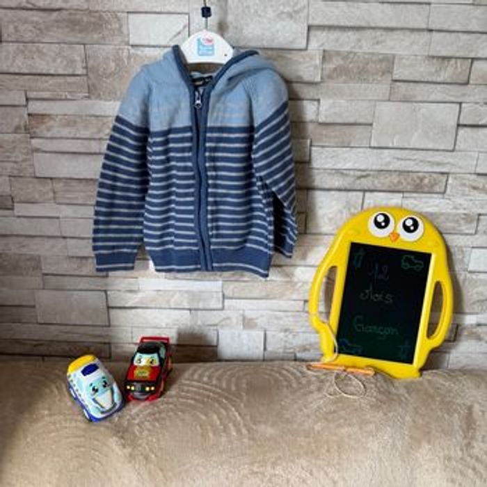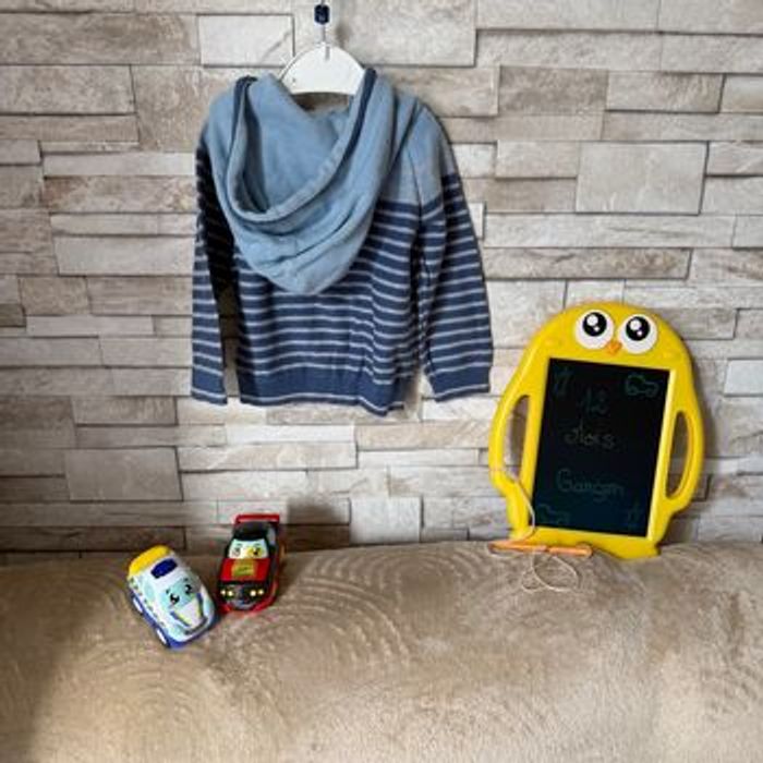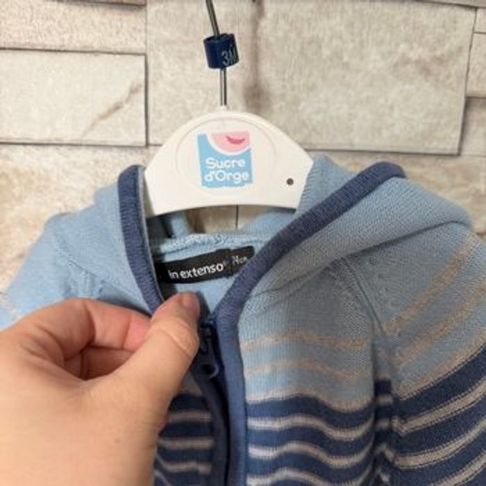 Gilet en maille bleu, à rayures Capuche, zippée Taille 12mois Marque in extenso Très état #inextenso #vetements12mois #vetementsgarcon #12moisgarcon #tresbonetat