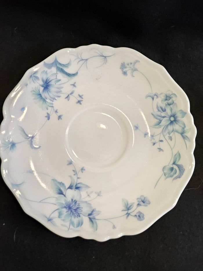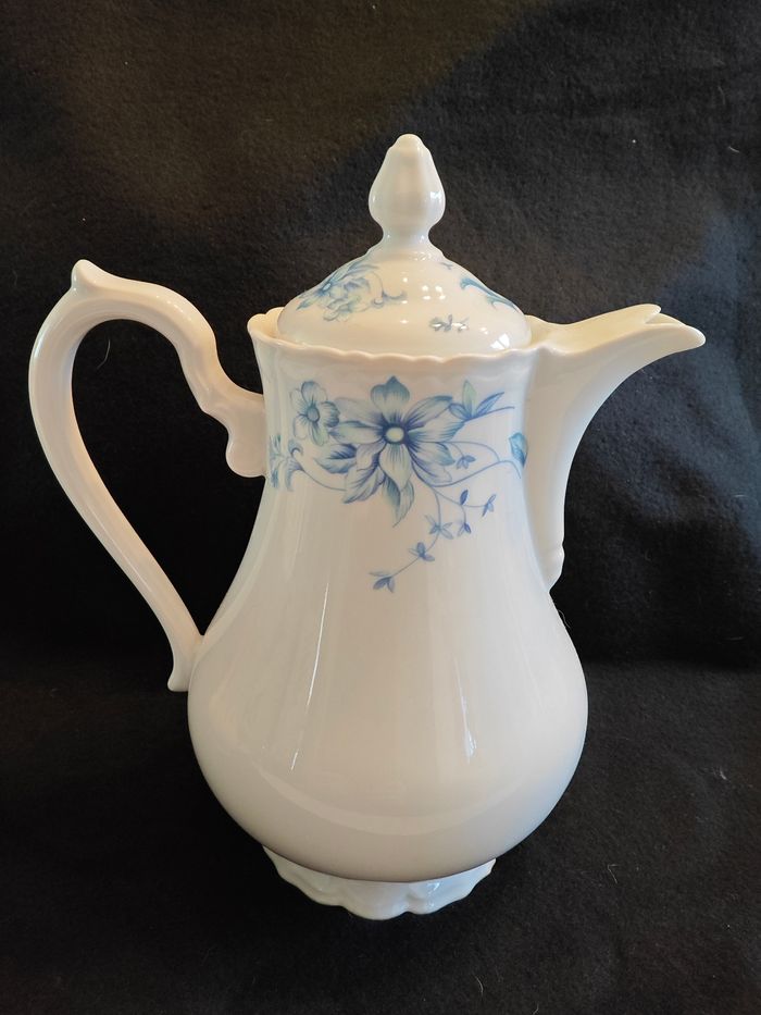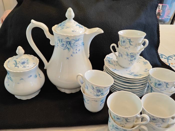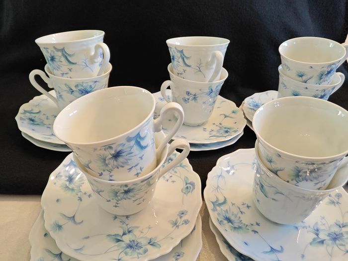 Etat impeccable, aucun éclat Le service comprend, 1 théière, 1 sucrier, 10 tasses et soucoupes Série Rembrandt Forme sylver Fabrication française