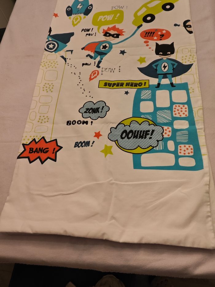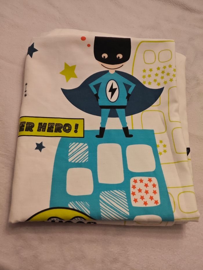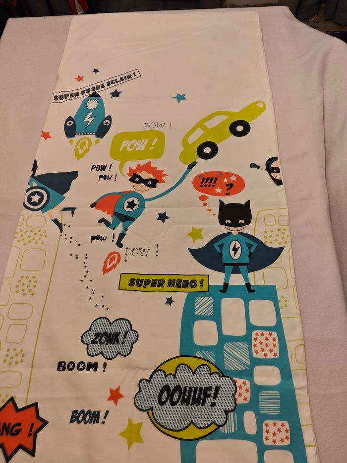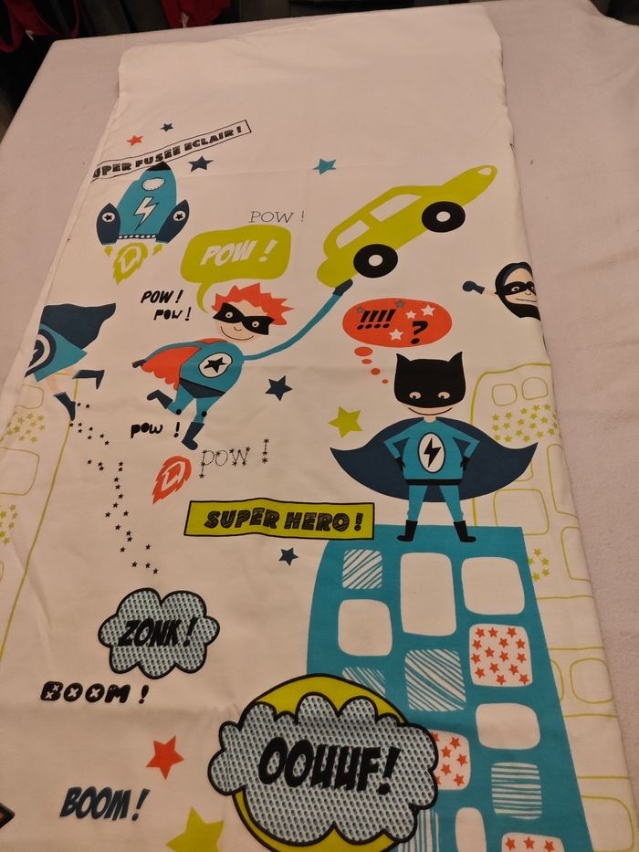 Dimensions 140x118 1 côté super héros et un côté blanc Fermeture par boutons pression