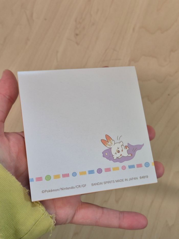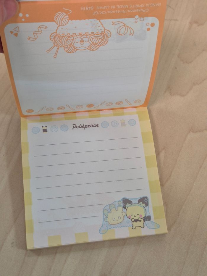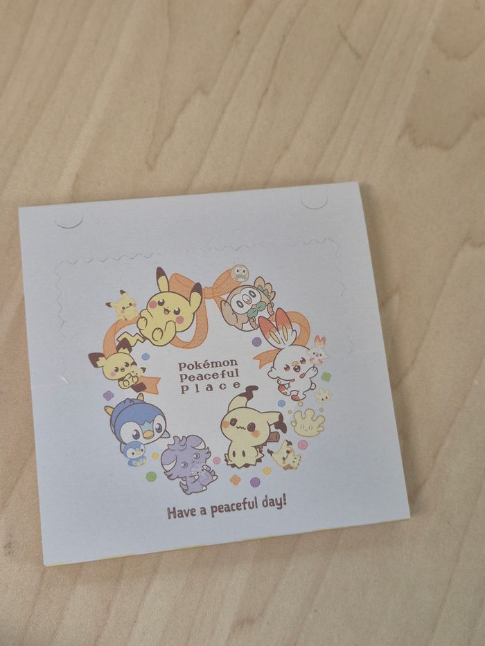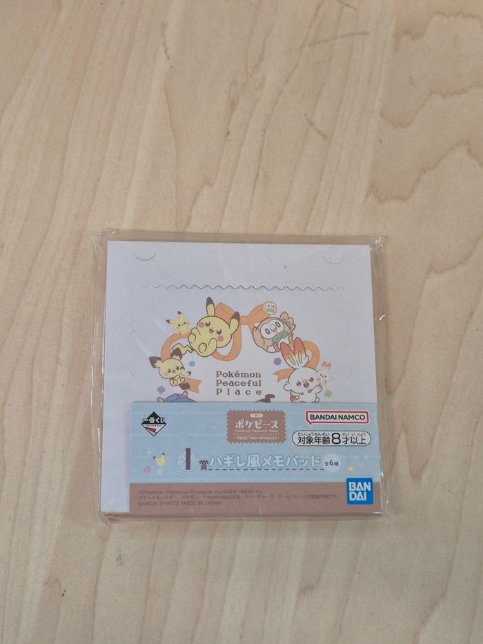Bloc memo Pokemon Ichibankuji Poke Peace Peaceful Place. Papier, environ 10 x 10 cm. En parfait état (jamais utilisé). 🌸Les prix sont fixes, car ils intègrent les taxes auxquels les pros sont asujettis. Aucune offre ne sera acceptée qu'il s'agisse d'un lot ou d'un article à l'unité, merci. 🌸N'hésitez pas à vérifier la disponibilité de l'article avant de procéder à l'achat.