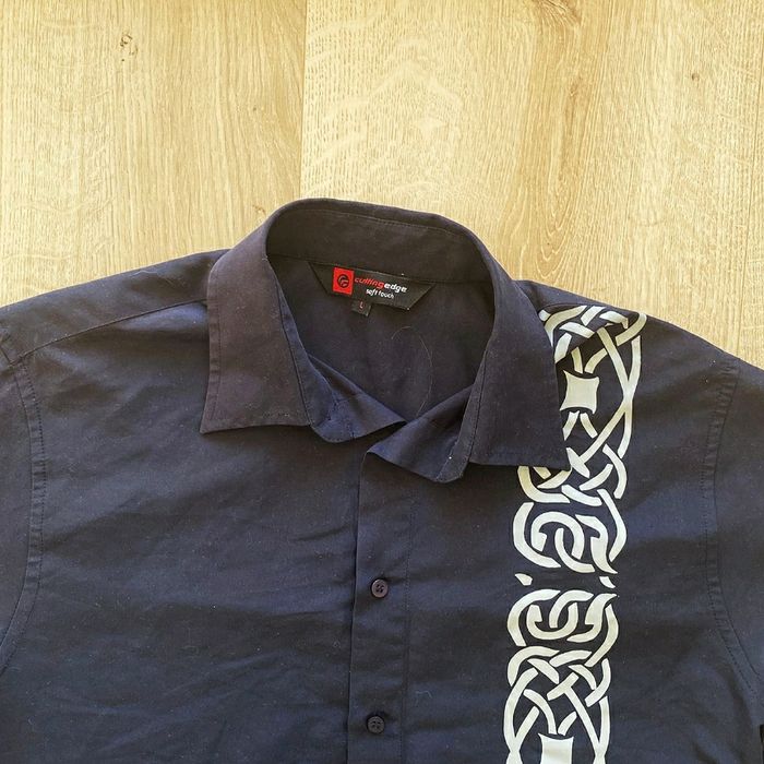 Cutting Edge Chemise Samoan Maori Homme Exclusive Vintage Y2K Tribal en très bon état (Taille L) - photo numéro 3