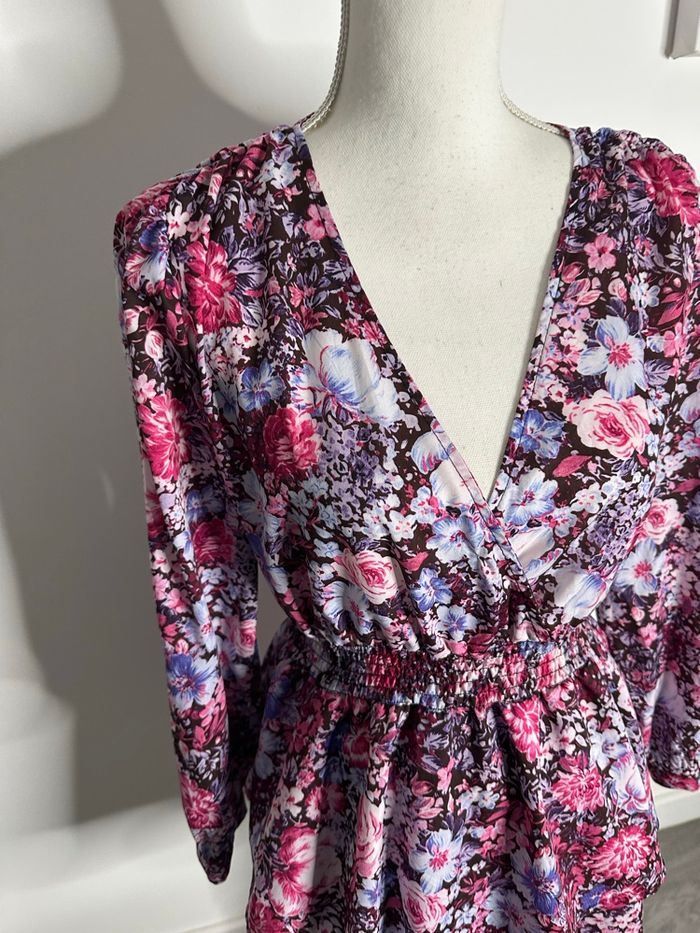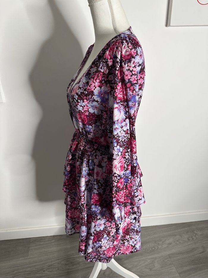Robe à fleurs rose et violette bohème chic T36 S - photo numéro 3