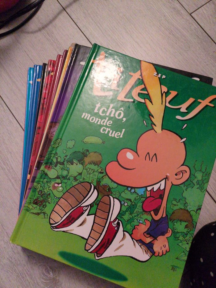 En assez bon état général, 9 bds titeuf (voir les titres sur la photo) possibilité de vendre séparément La promo est active pour les achats en lot ☺️