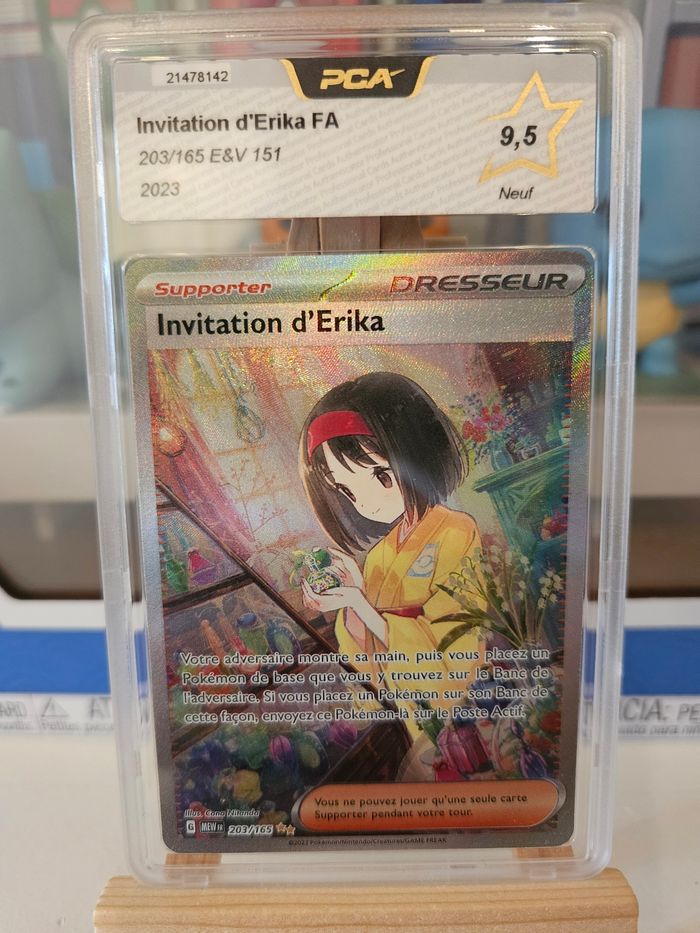 ✨ EV 151 – PCA 9,5 – Carte Pokémon gradée ✨ 🔹 Carte Pokemon : Invitation d'Erika - Erika FA AR ALT Alternative Alternatif Full Art 🔹 Set : Écarlate et Violet - EV3.5 - EV03.5 - EV 3.5 03.5 - EV 151 🔹 Numéro : 203/165 - MEW 203 - MEW203 🔹 Grade : PCA 9,5 / PCA9.5 🔹 État : Neuf, sous boîtier scellé PCA9.5 🔹 Langue : Français Le boîtier PCA est en parfait état, carte bien protégée et mise en valeur. 📦 Envoi soigné et protégé #pokemon #pikachu #pcagrade #pca #cartes #grade #gradé #grader #carte #cartepokemon #gradee #gradée #psa #mint #nearmint #secrete #secretes #secrète #pca10 #psa10 #authentique #officielle #officiel #dracaufeu
