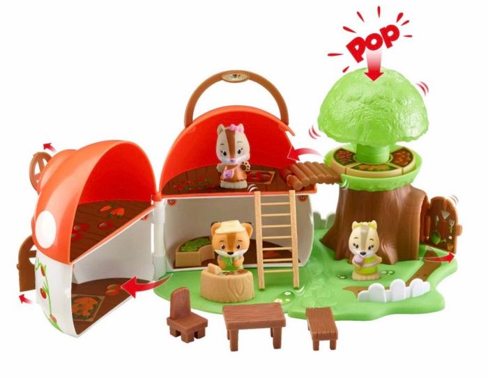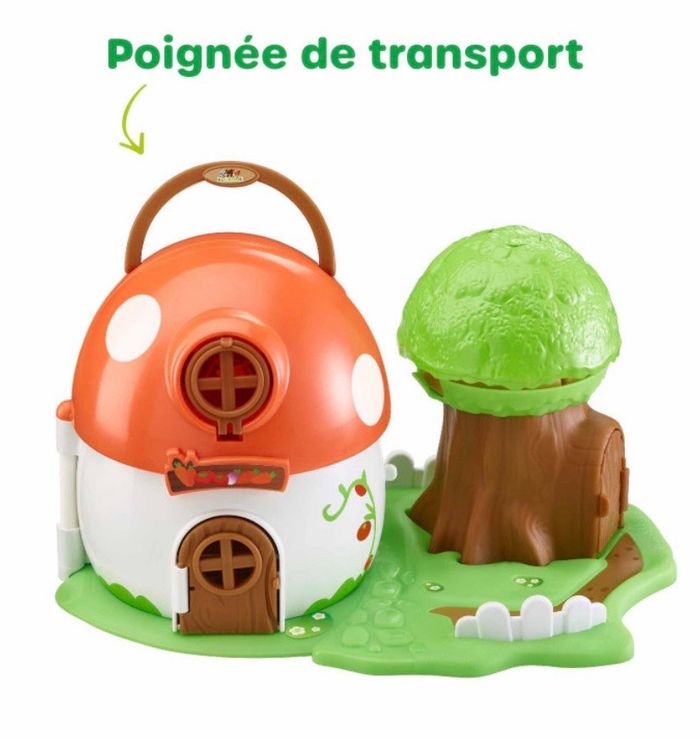 Surprise ! Le champignon s’ouvre pour laisser apparaître une boutique sur 2 étages. Idéal pour reproduire les scènes de la vie quotidienne. Appuie sur le buisson et « Pop ! », découvre ce qui se cache à l’intérieur ! De nombreuses activités pour s’amuser : un pont, une porte et une fenêtre amovibles, une cachette secrète, des accessoires... Pratique, tout se range à l’intérieur du champignon qui se transporte facilement grâce à sa poignée. Inclus : Léo de la famille Foxy et 9 accessoires (1 échelle, 4 cagettes, 1 comptoir, 1 table, 1 chaise, 1 banc).