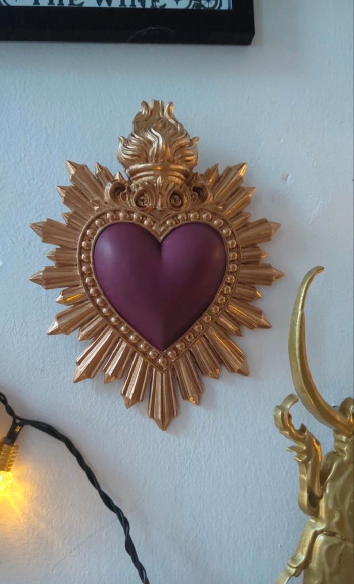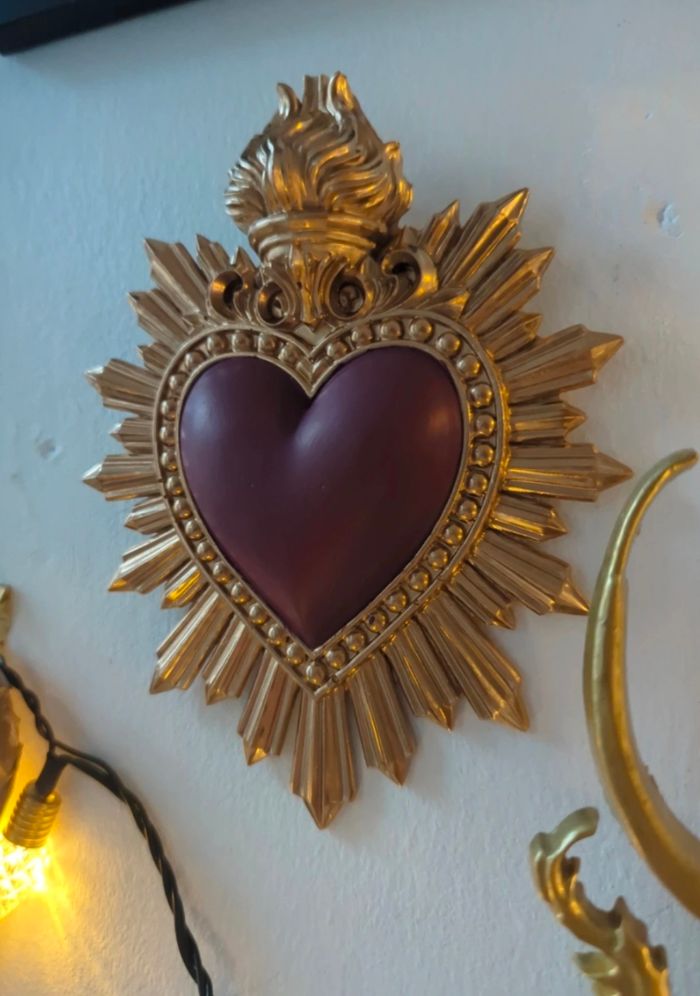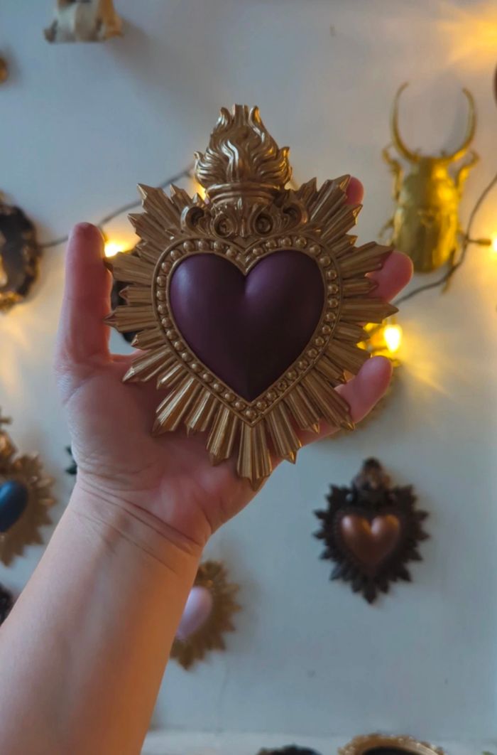Coeur ex voto rose foncé et doré - cabinet de curiosité  - photo numéro 4
