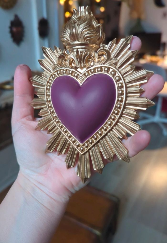 Coeur ex voto rose foncé et doré - cabinet de curiosité  - photo numéro 5
