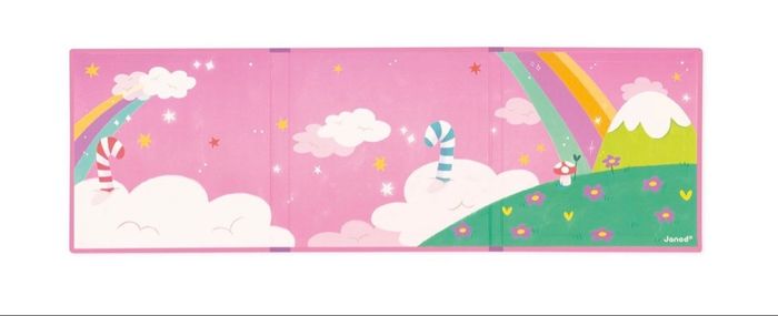 Entrez dans le monde merveilleux des licornes ! Ici, les licornes sautent de nuages en nuages et mangent des bonbons géants ! Pour imaginer des histoires à l'infini, ce livre est composé de magnets en forme de licornes multicolores et de multiples éléments de décor.