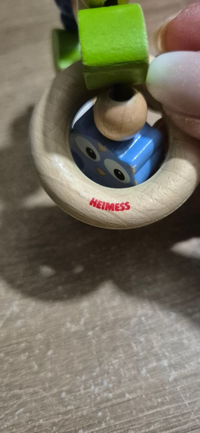 Hochet de dentition bébé hibou et perles en bois Heimess Bon état