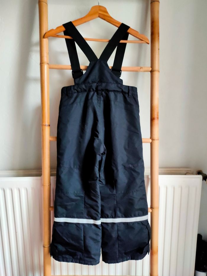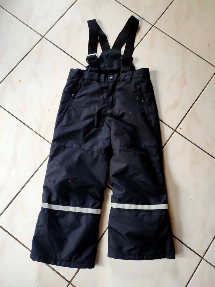 Pantalon de ski coloris noir avec bande réfléchissante, modèle mixte, bretelles élastiques. Marque OVS, taille 5/6 ans, 116cm. Il est en excellent état, porté 1 fois. Prix ferme, PAS DE NÉGO !!!