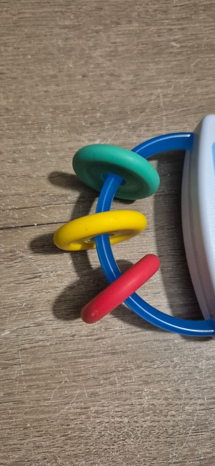 Hochet musical tambourin avec perles coulissantes servant d'anneaux de dentition Baby Einstein Très bon état