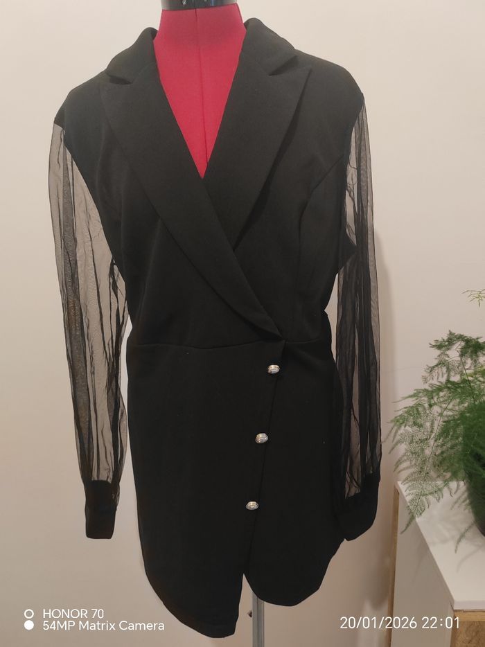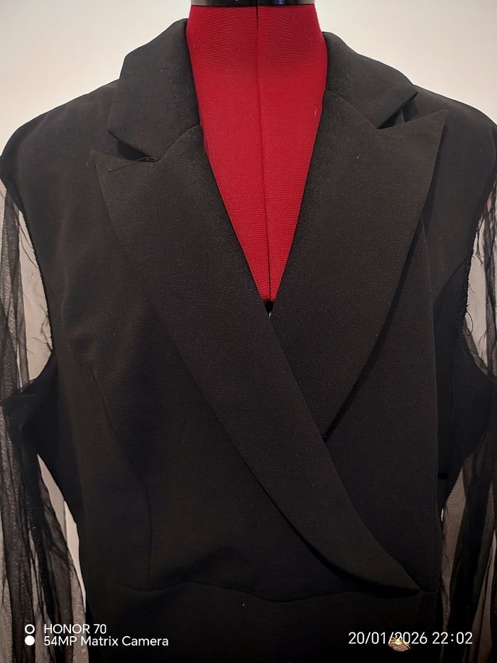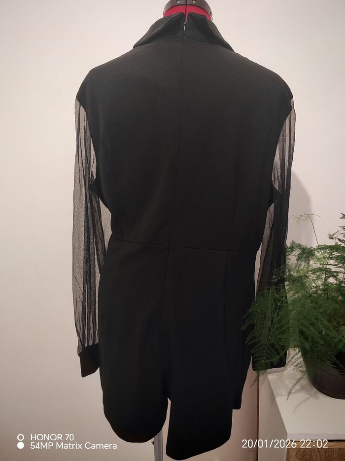 Manches voile transparent Matière extensible Largeur à plat sous les aisselles 60 cm Largeur taille à plat de 49 a 54 cm Longueur totale 82 cm Taille44 XXL Short avec jupette sur le devant #geliscyrilletaille44 #geliscyrilletailleXXL CA3