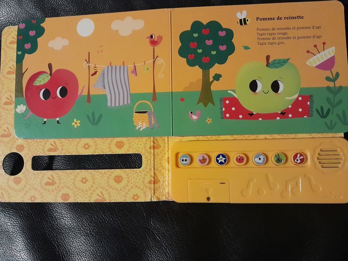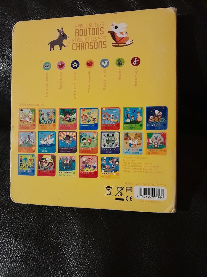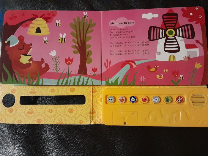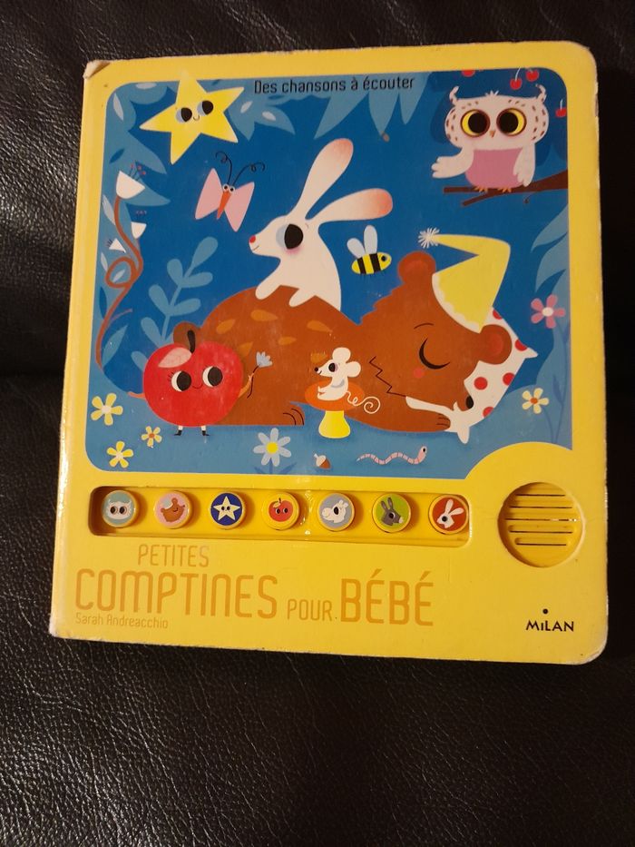 Livre sonore petites comptines pour bébé. Bon état, fonctionne parfaitement. Quelques imperfections sur le côté Prix d'achat 14.90€