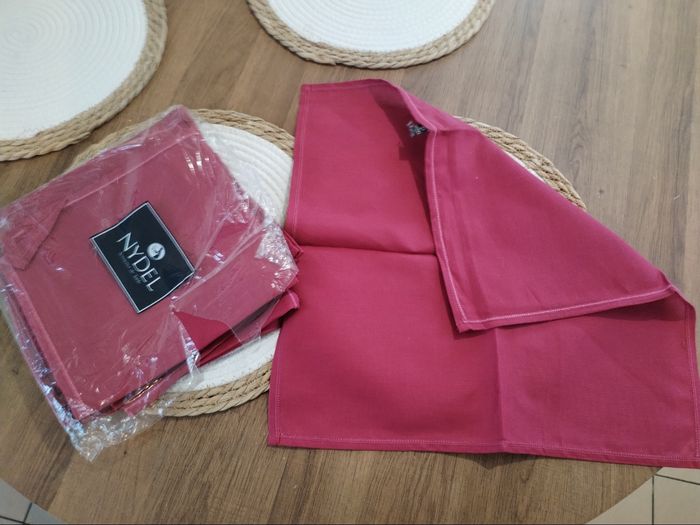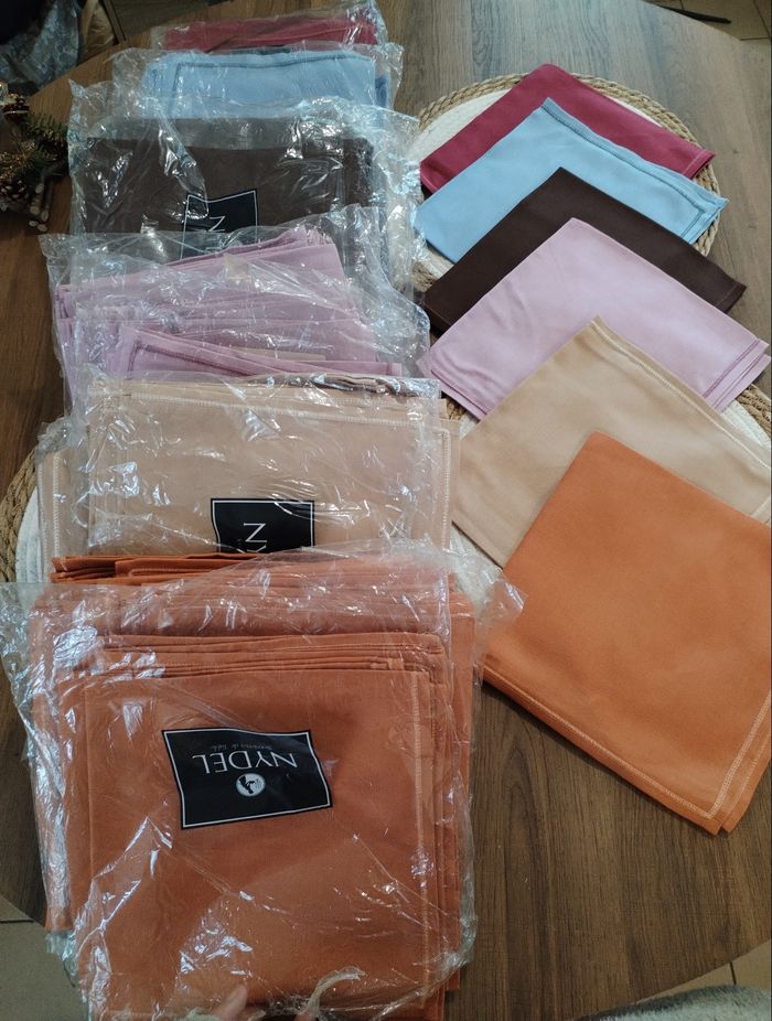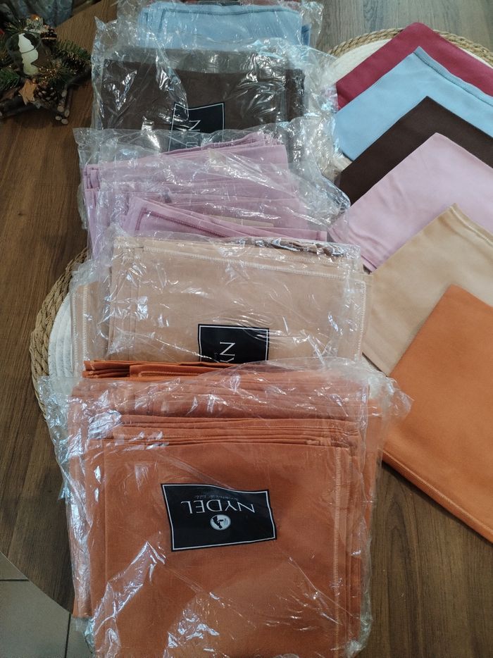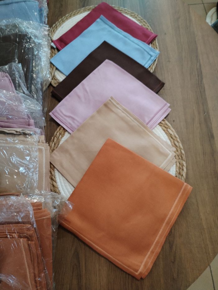 Très belles serviettes de table 100% coton 48*48 Totalement neuves Plusieurs coloris disponibles Je fais dès lots de 8 serviettes de table pour 4 euros soit 0.50 centimes la serviette